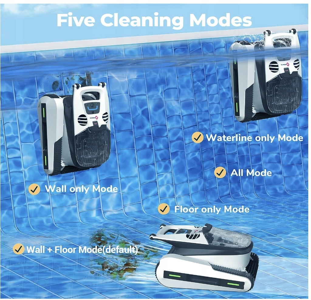 Этот робот, оснащенный тремя эффективными двигателями и 250 мкм фильтра, поможет вам сохранить кристалл воды. Подключение Bluetooth и Wi -Fi облегчает работу и конфигурацию.