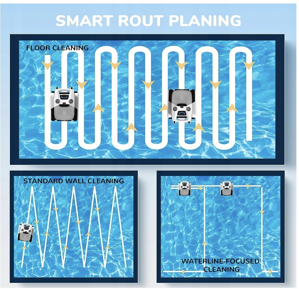 Этот робот бассейна - идеальное решение для людей, которые всегда хотят иметь чистый бассейн без усилий. Прочная батарея 5200 мАч обеспечивает до 180 минут работы на одну зарядку. Интуитивно понятное планирование маршрута является эффективной очисткой.