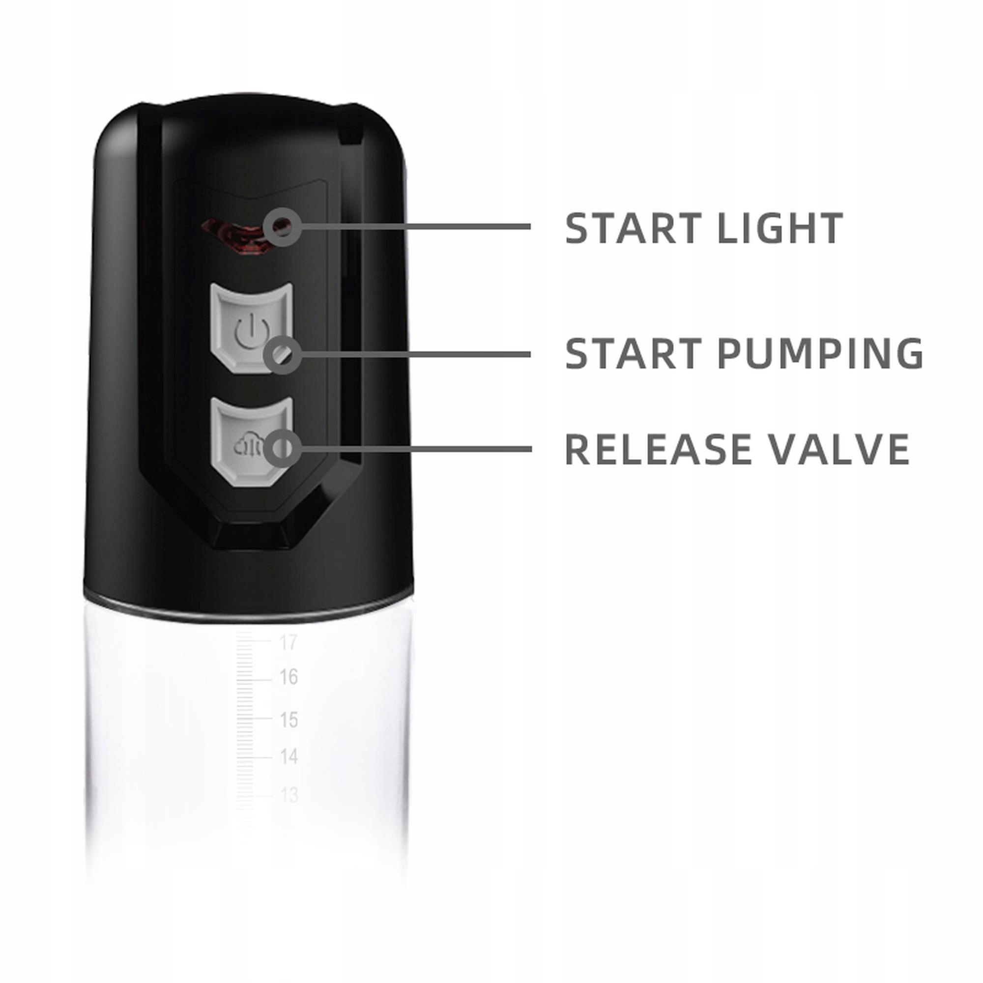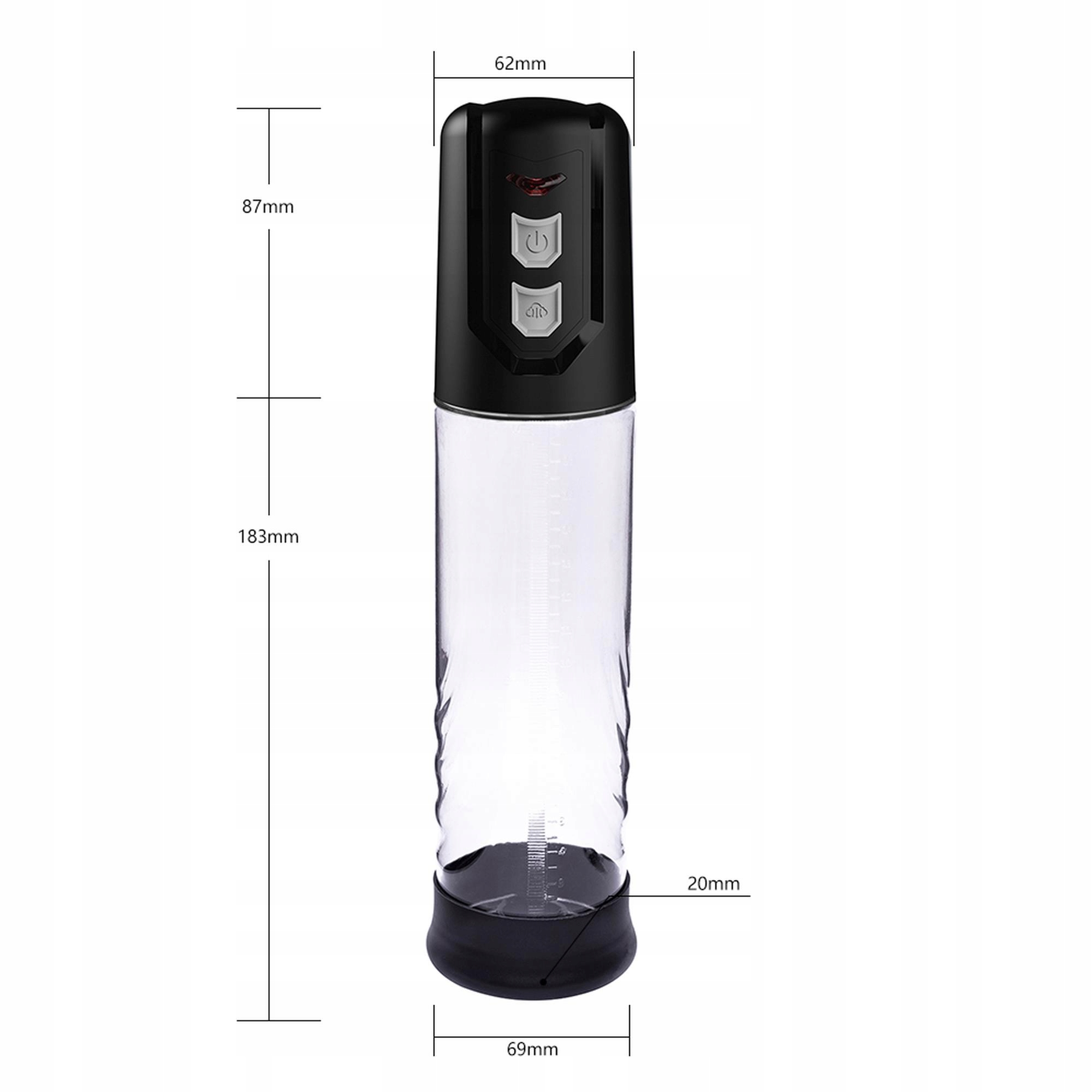 <р> Регулярные тренировки дают стабильные и заметные результаты. Воздух из цилиндра откачивается с помощью электродвигателя, мощность которого можно регулировать с помощью кнопки. Нижняя кнопка снижает давление в цилиндре. <р> Полоса размера на поверхности позволяет заметить разницу до и после массажа. <р> Очень удобный в использовании насос для увеличения, благодаря которому ваш пенис сможет увеличиться как в длину, так и в диаметре всего за несколько недель. Его работа проста и обусловлена законами физики: после введения элемента внутрь накачка создает отрицательное давление. Это, в свою очередь, позволяет кровеносным сосудам быстрее и сильнее наполняться кровью. Благодаря этому ваш пенис станет намного чувствительнее к любым прикосновениям, вы сможете ощущать гораздо больше удовольствия и тем самым довести себя до такого оргазма, которого у вас никогда не было.
