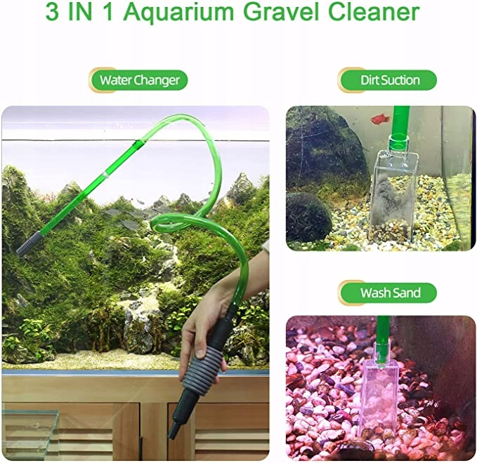 Boxtech Aquarium Cleaner 3 в 1: смена воды, промывка песка, очистка — многофункциональный инструмент для очистки. Совместимый с дополнительной насадкой, он поможет очистить гравий, который эффективно отделяет фекалии и остатки пищи из аквариума, сохраняя воду кристально чистой.