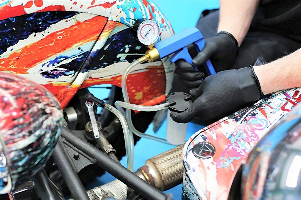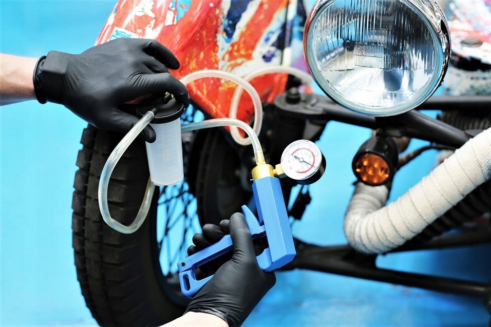** Этот набор поставляется с жидким баком и кабелями, а также ряд адаптеров, включая адаптеры тормоза и вентиляционных болтов.