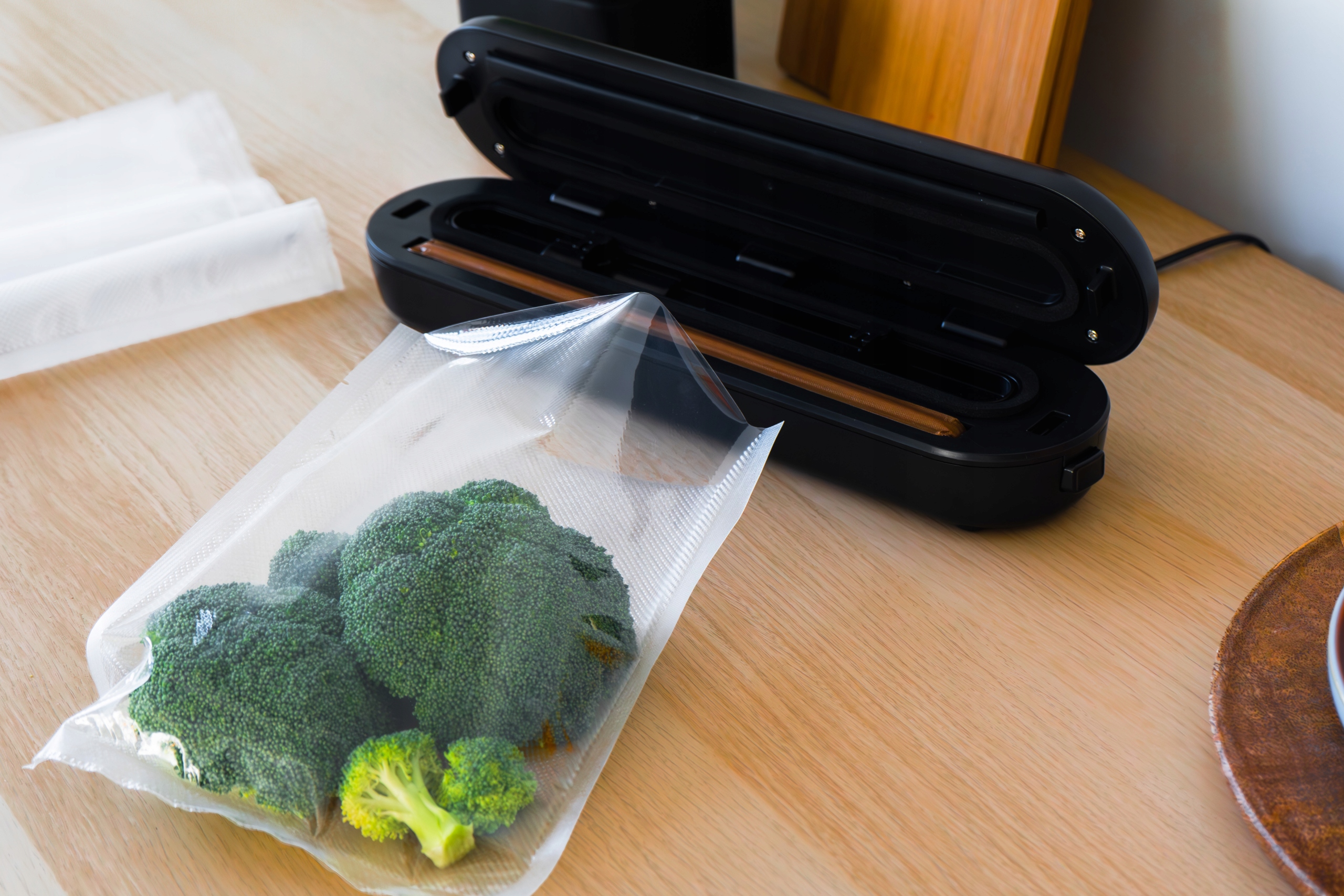 Защитите продукты от бактерий и плесени благодаря технологии вакуумной упаковки. Эффективность герметичной упаковки пищевых продуктов продлевает срок хранения до 5 раз! Вакуумная упаковка позволяет наслаждаться неизменным вкусом, цветом и пищевой ценностью хранящихся таким образом продуктов. Используйте по максимуму сезонные фрукты и овощи. Экономьте время, необходимое для покупок, и планируйте питание заранее. Держите холодильник и морозильную камеру в порядке, экономя при этом место. Использование вакуумного упаковщика означает, что продукты больше не будут выбрасываться впустую!