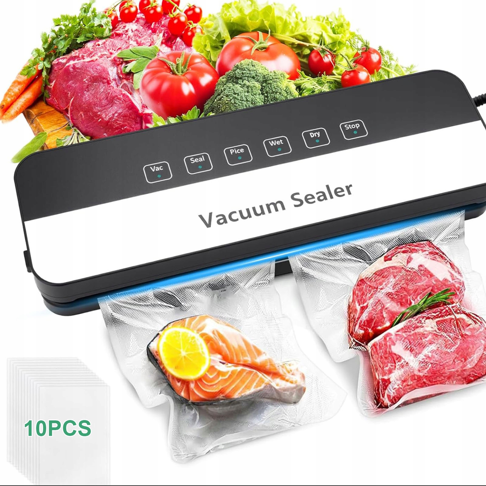 ВАКУУМНЫЙ УПАКОВАТЕЛЬ 6 В 1 С ПАКЕТАМИ ПО 10 ПРЕДМЕТОВ, СУХОЙ И ВЛАЖНЫЙ РЕЖИМ ДЛЯ КУХНИ