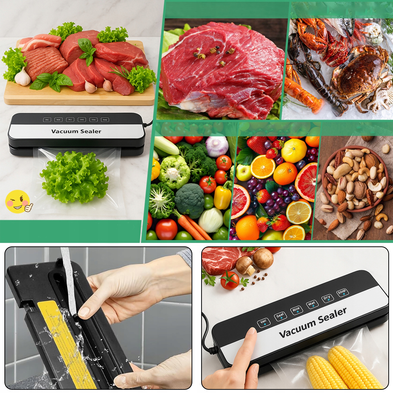 ✨Кнопка Wet: надежно запечатывает влажные продукты (фрукты, овощи, маринованное мясо) без повреждения жидкостью. ⏳