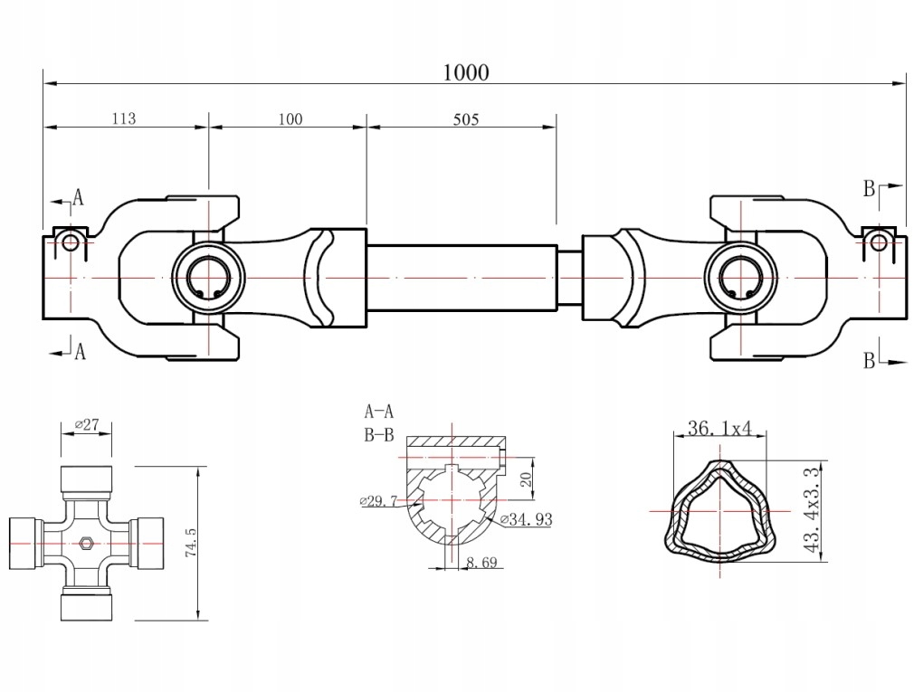 Предназначен для сельскохозяйственных машин мощностью 25–45 л.с. Максимальный крутящий момент 500 Нм.