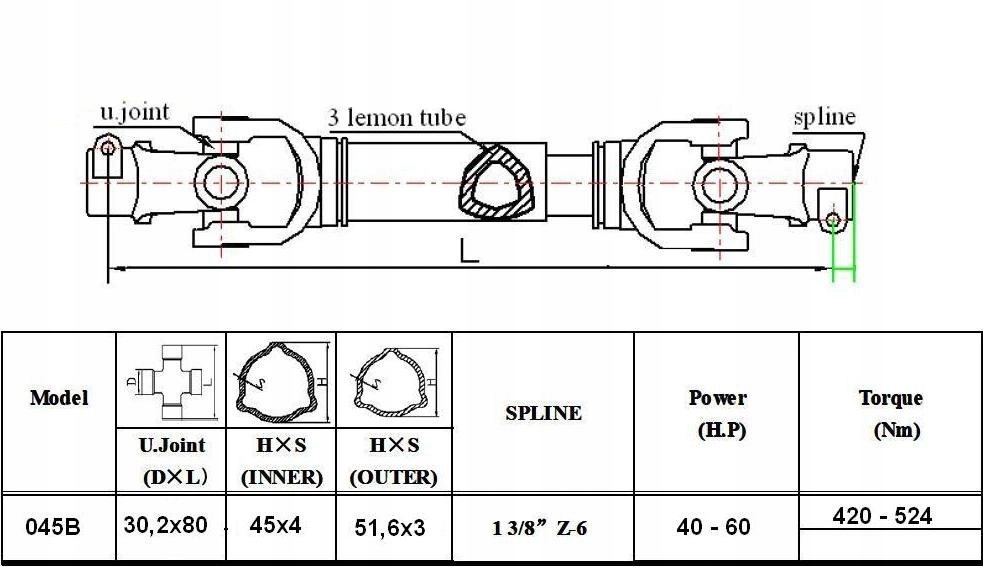 ТИП 045Б - Передаваемая мощность до 60 л.с., Крутящий момент до 524 Нм