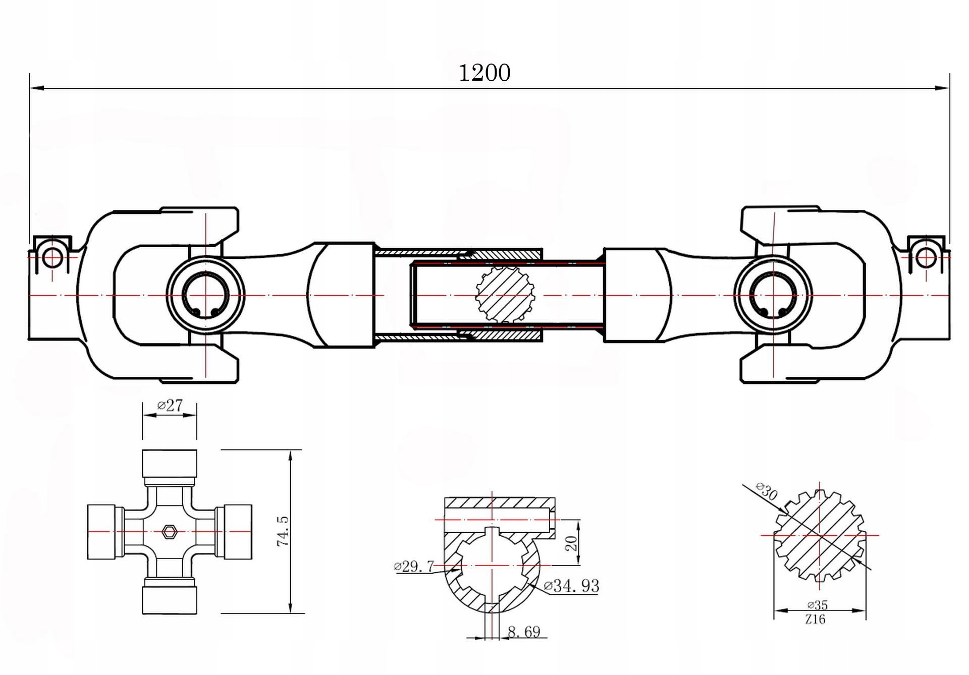 ВАЛ СИЛОВОГО РЕЛЕ ВОМ 120 см. ФРЕЗ