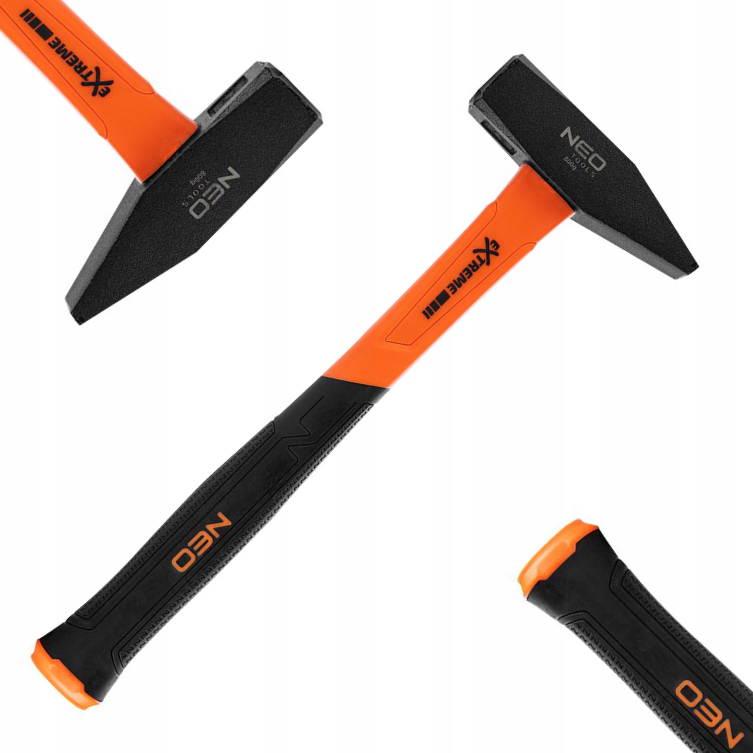 Головка молотка подвергнута индукционной закалке и машинной шлифовке. Дополнительно был защищен слоем лака. Ручка изготовлена из стеклопластика, устойчивого к повреждениям, влаге и перепадам температур. Ручка из двойного материала покрыта противоскользящим слоем, что повышает комфорт работы. Кроме того, он гасит вибрации. Ручка разработана технологами NEO и запатентована. Сертификаты GS, TÜV Rheinland и качество изготовления в соответствии с немецким стандартом DIN 1193 гарантируют надежность продукта.