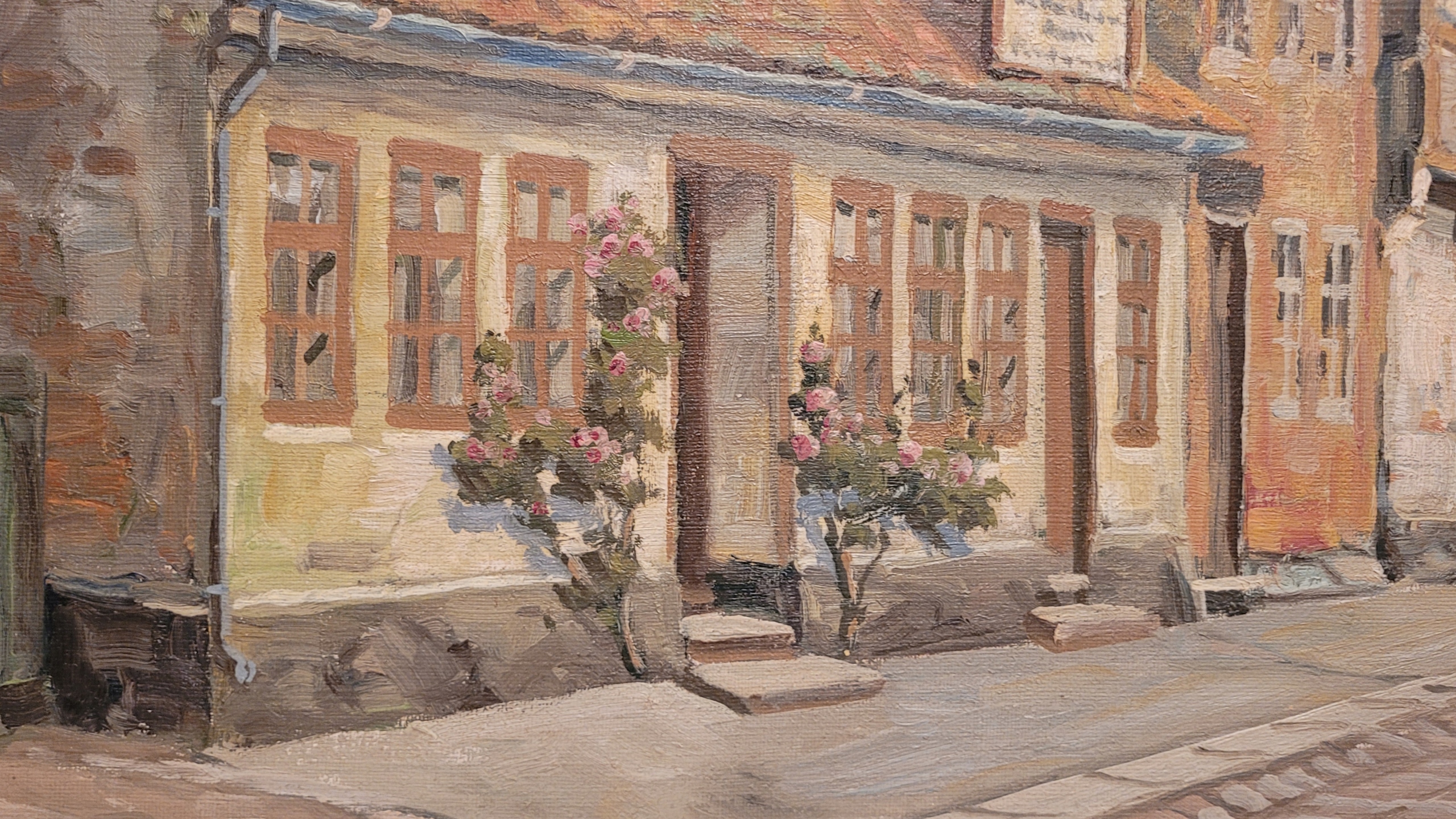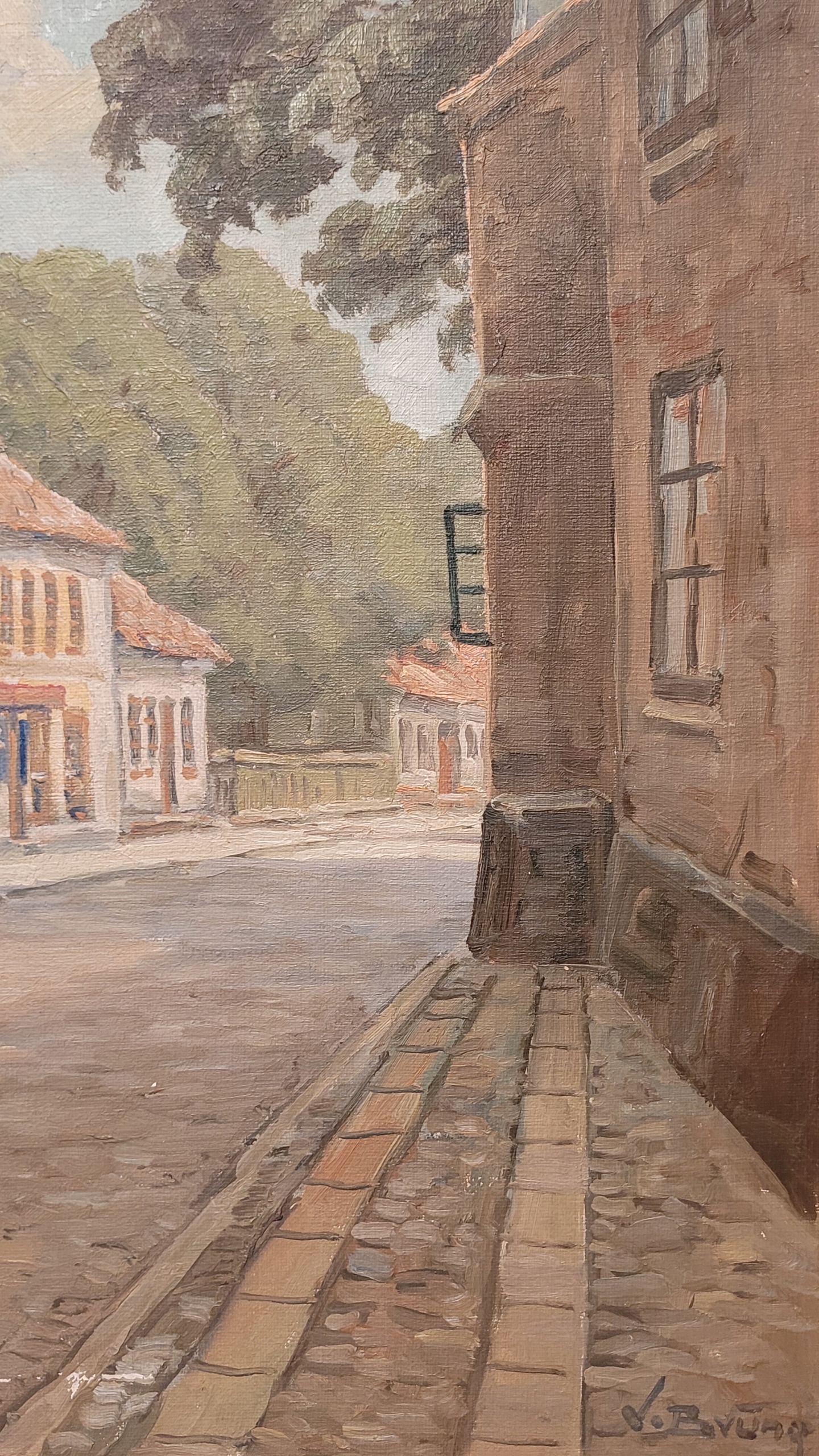 Вальдемар Бруно (1876 -?) - «Старый город», красивая нефтяная картина.