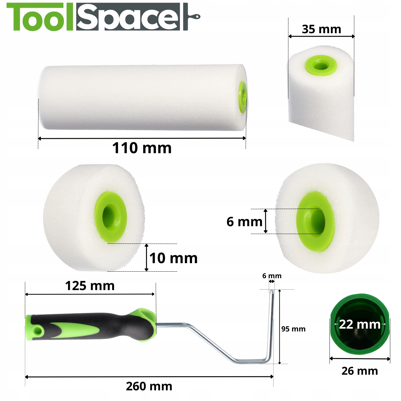 Moltopren ToolSpace Sponge Roller 110mm x 35mm – профессиональный инструмент для требовательных профессионалов | В наборе 10 штук + ручка