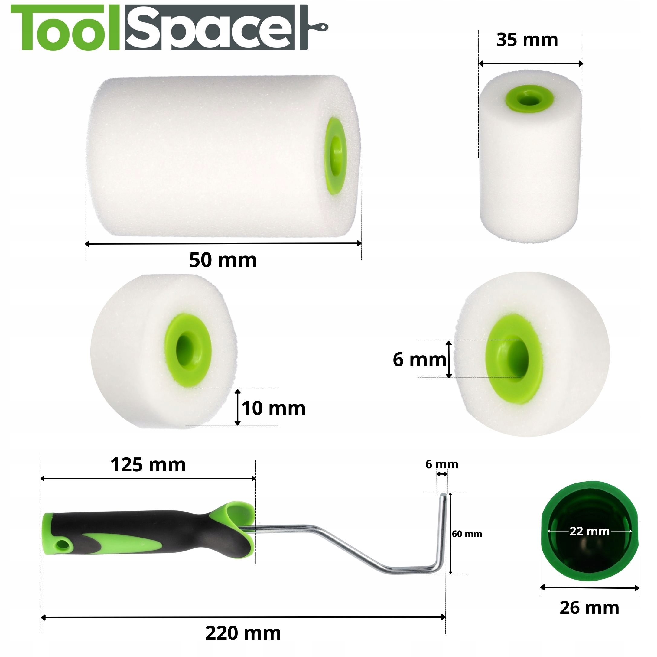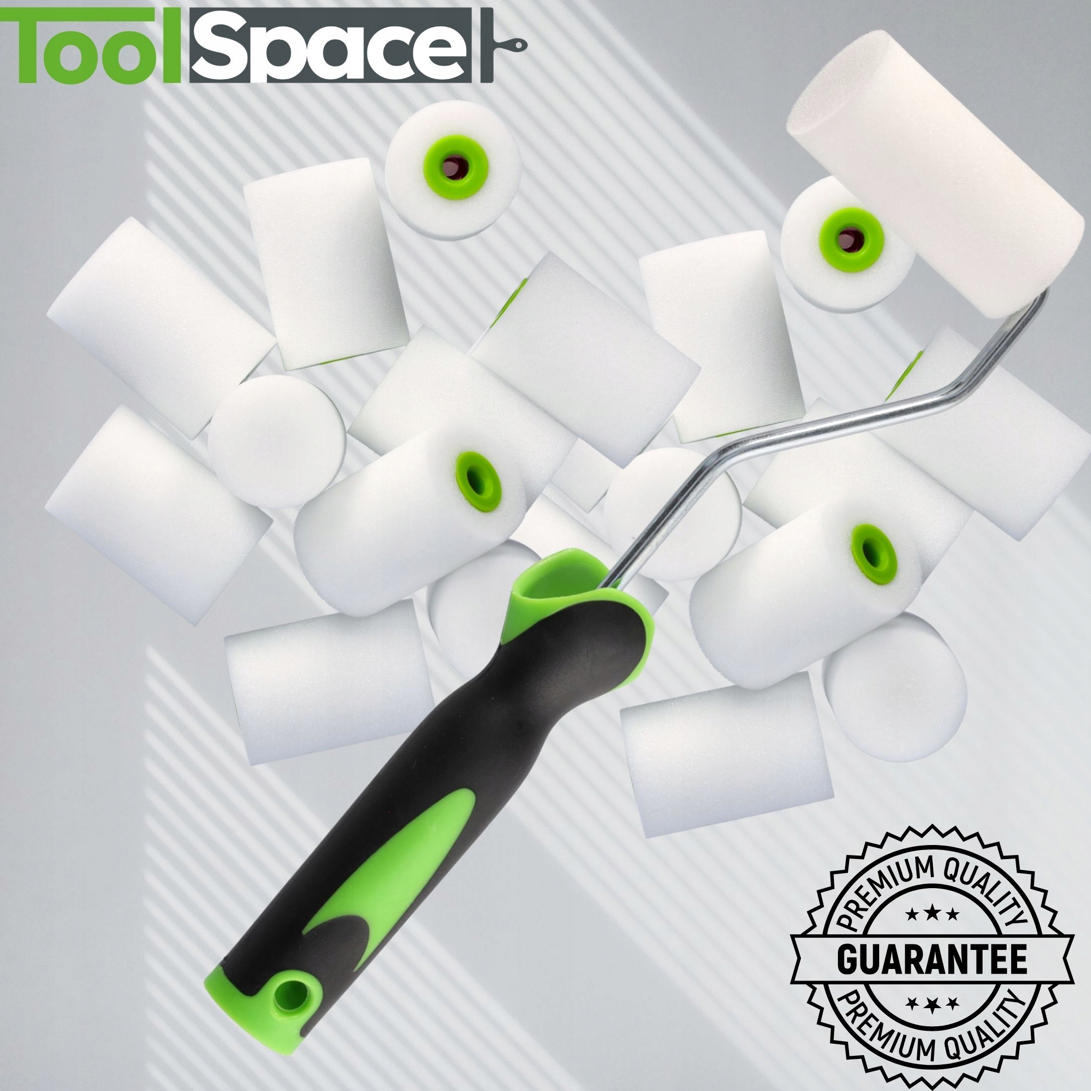 Moltopren ToolSpace Sponge Roller 50mm x 35mm - Профессиональный инструмент для требовательных профессионалов | 20 штук + ручка в комплекте