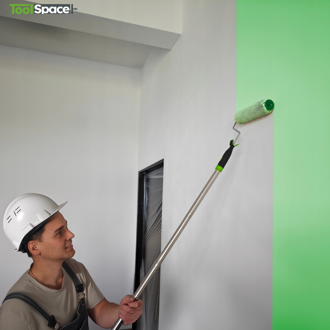 представляет собой усовершенствованный малярный удлинитель, состоящий из четырех резьбовых секций, позволяющий увеличить радиус действия до 105 см >. Это идеальный инструмент для большинства малярных работ внутри помещений, устраняющий необходимость в лестнице.