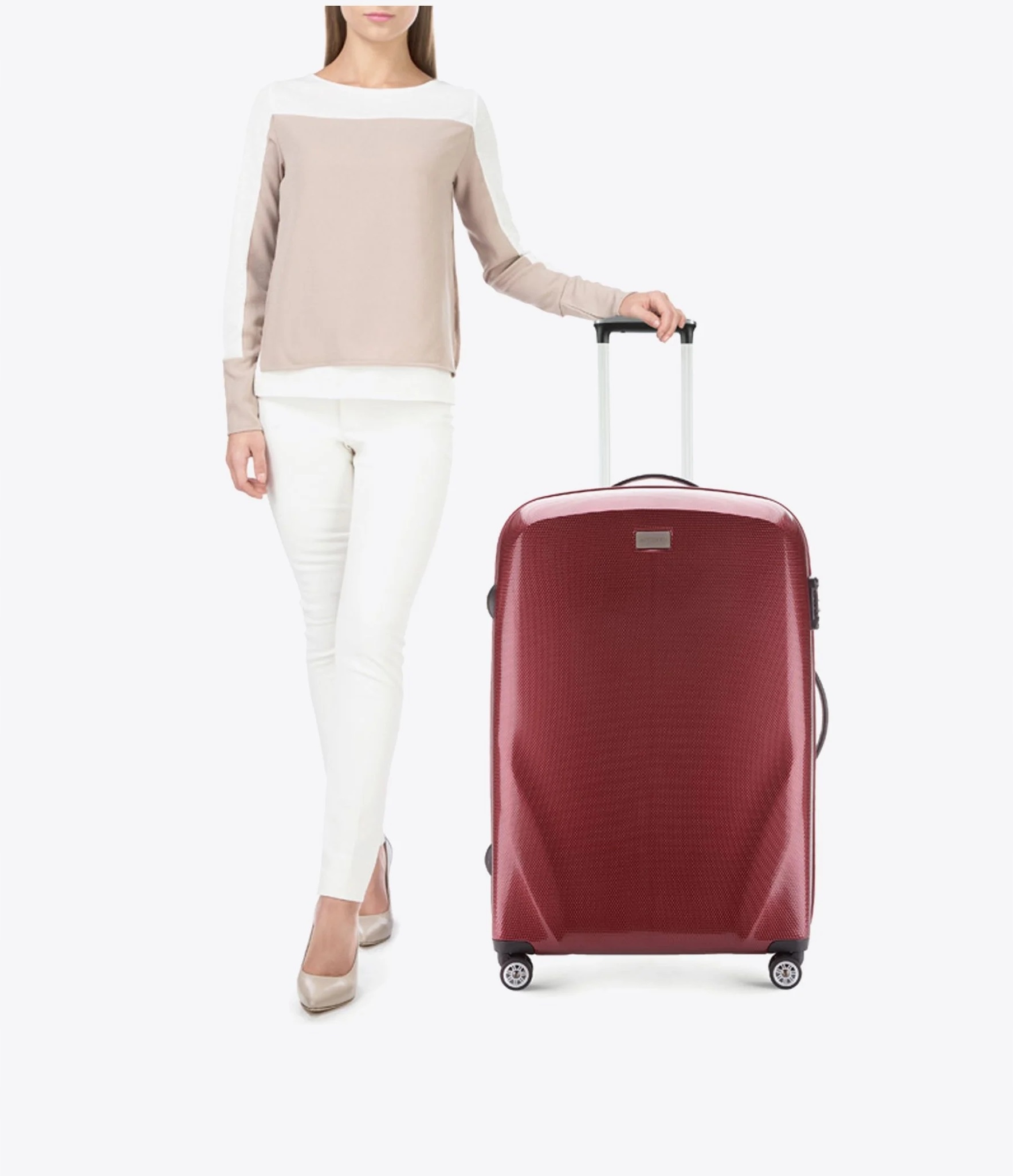 Чемодан изготовлен из очень прочного материала - поликарбоната, дополнительно покрытого специальным покрытием, повышающим устойчивость к царапинам. Характерная текстура и высочайшее качество изготовления гарантируют удовлетворение от использования в течение многих лет.
