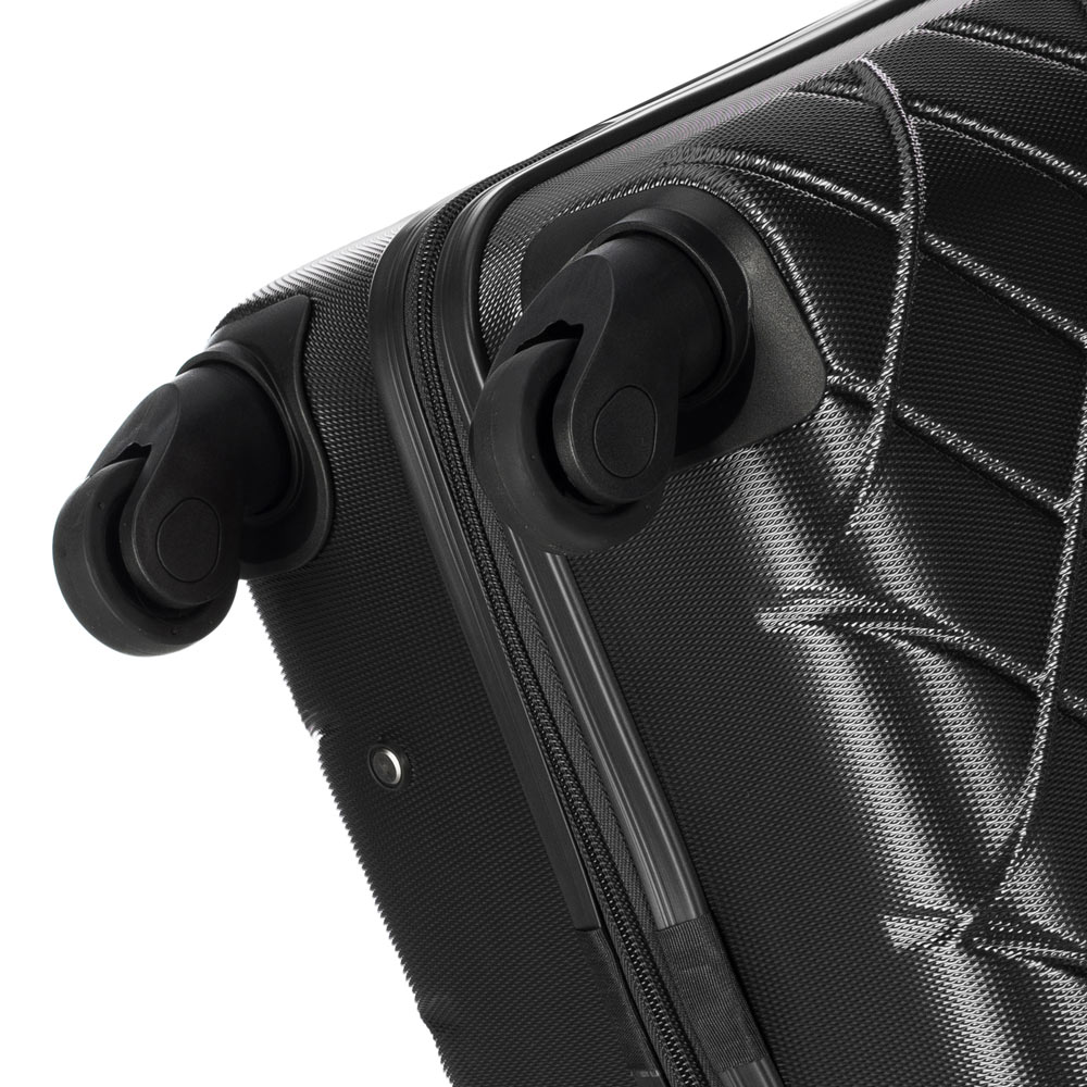 - c Ztery of The Wheel в твердых розетках заставляют чемодан очень комфортно даже на более сложных поверхностях. Модули, управляющие , вращаются на 360 градусов, что позволяет эффективно маневрировать.
