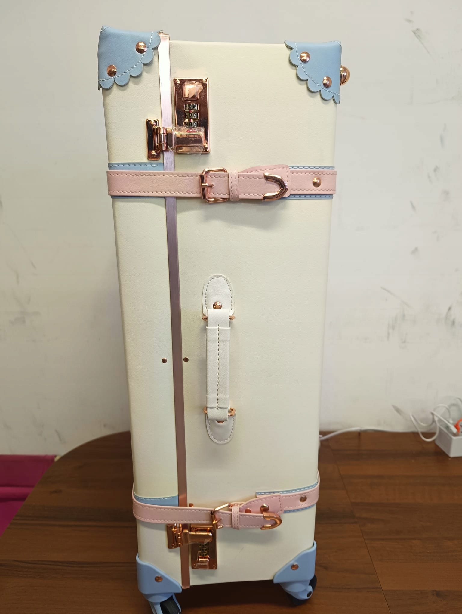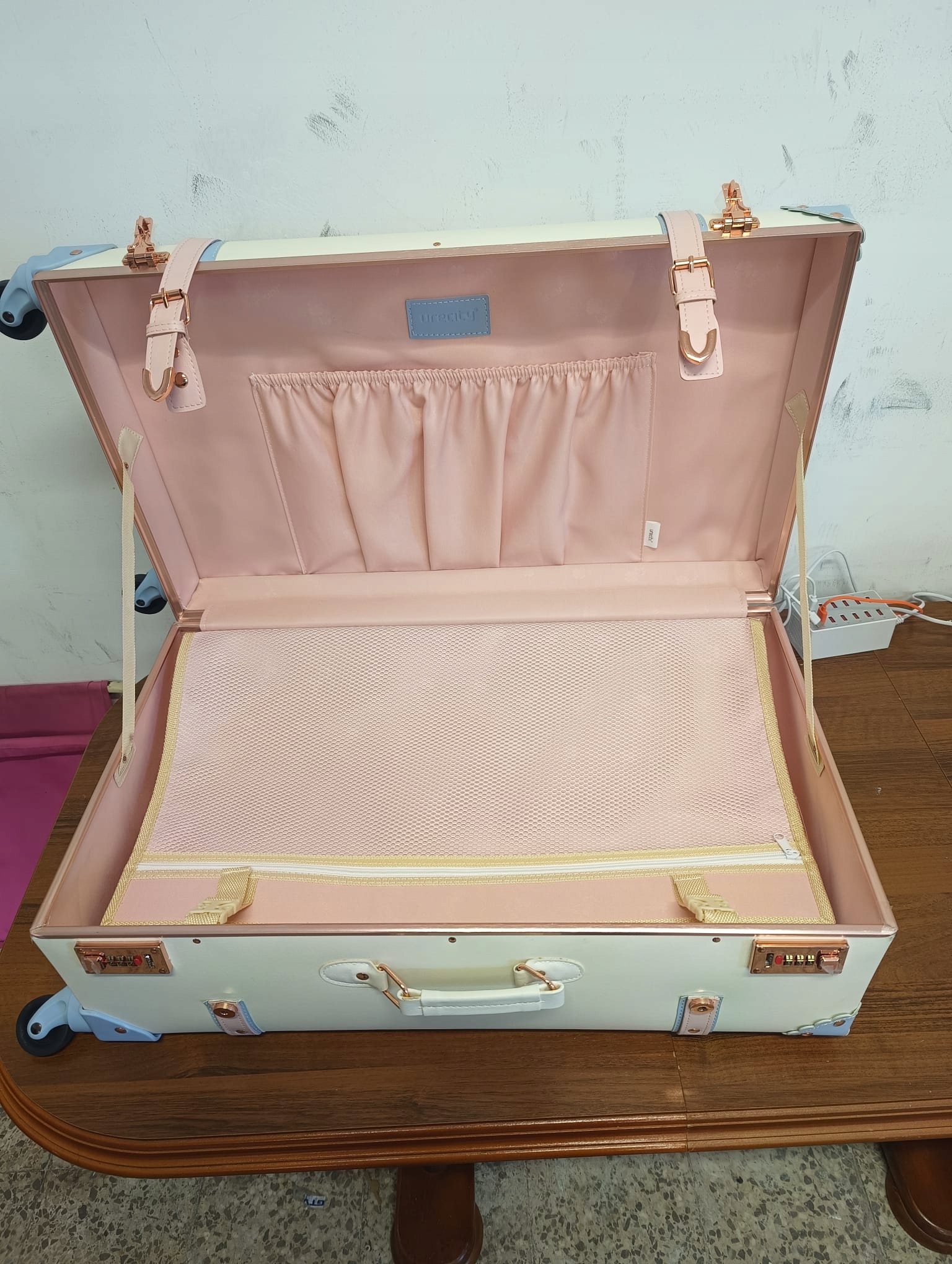 - В комплект входит прозрачный защитный чехол: более толстый материал, более прочный. Винтажный дорожный чемодан с телескопической штангой защитит этот милый и изысканный чемодан от повреждений и загрязнения во время полета и сохранит его в шкафу.