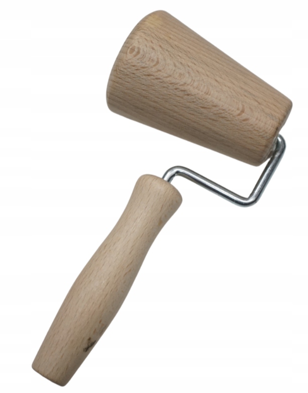 Деревянная наклонная скалка с ручкой. Его используют, например, для выравнивания теста, помещенного в форму для выпечки – благодаря этому тесто получается одинаковой толщины. Его также можно использовать как скалку для раскатывания теста.