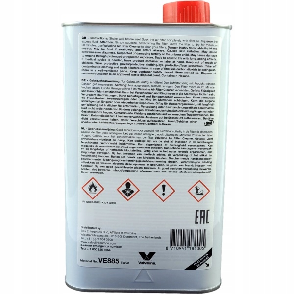 VALVOLINE МАСЛО ДЛЯ ЗАМАЧИВАНИЯ ВОЗДУШНЫХ ФИЛЬТРОВ 1L
