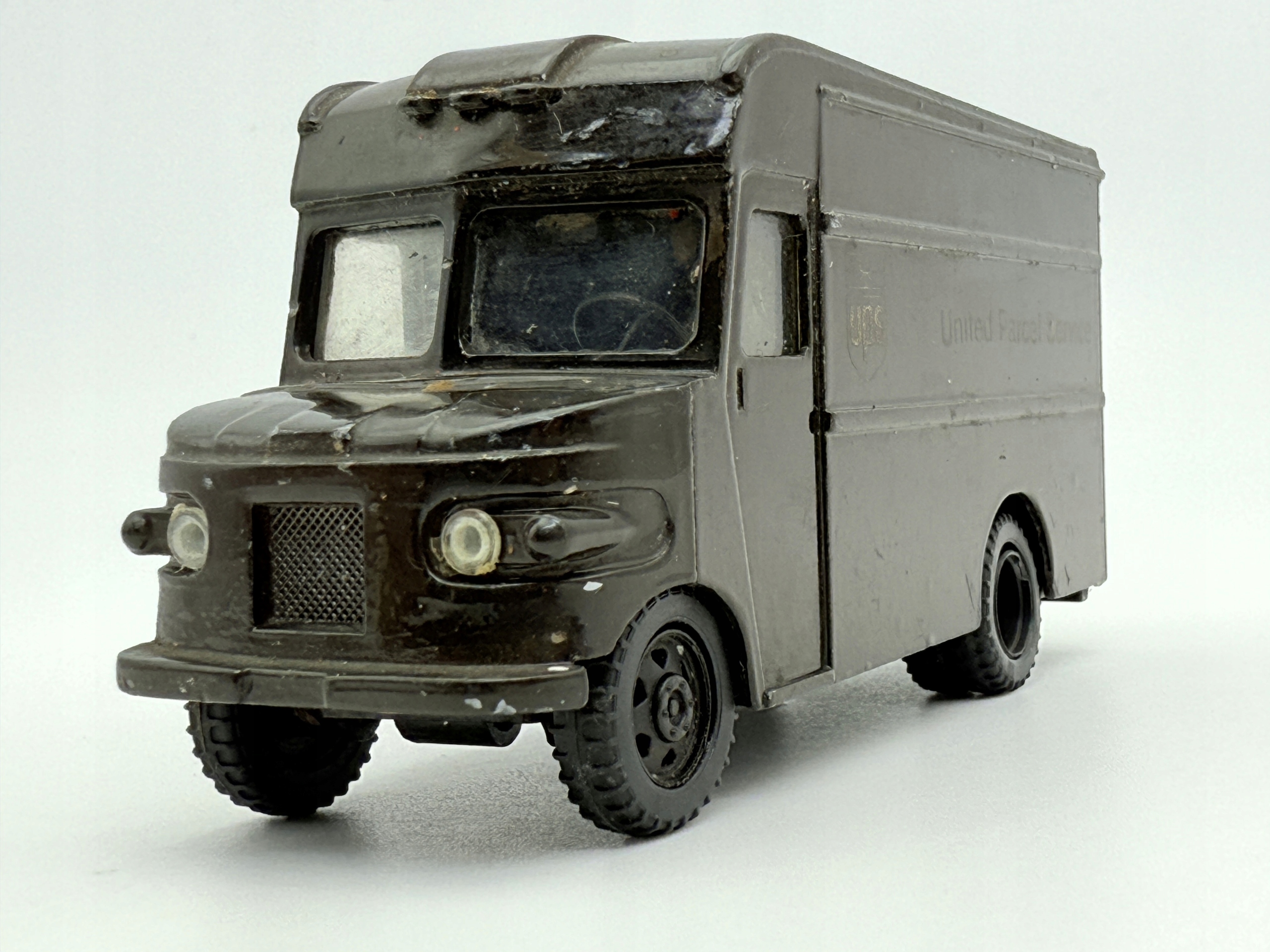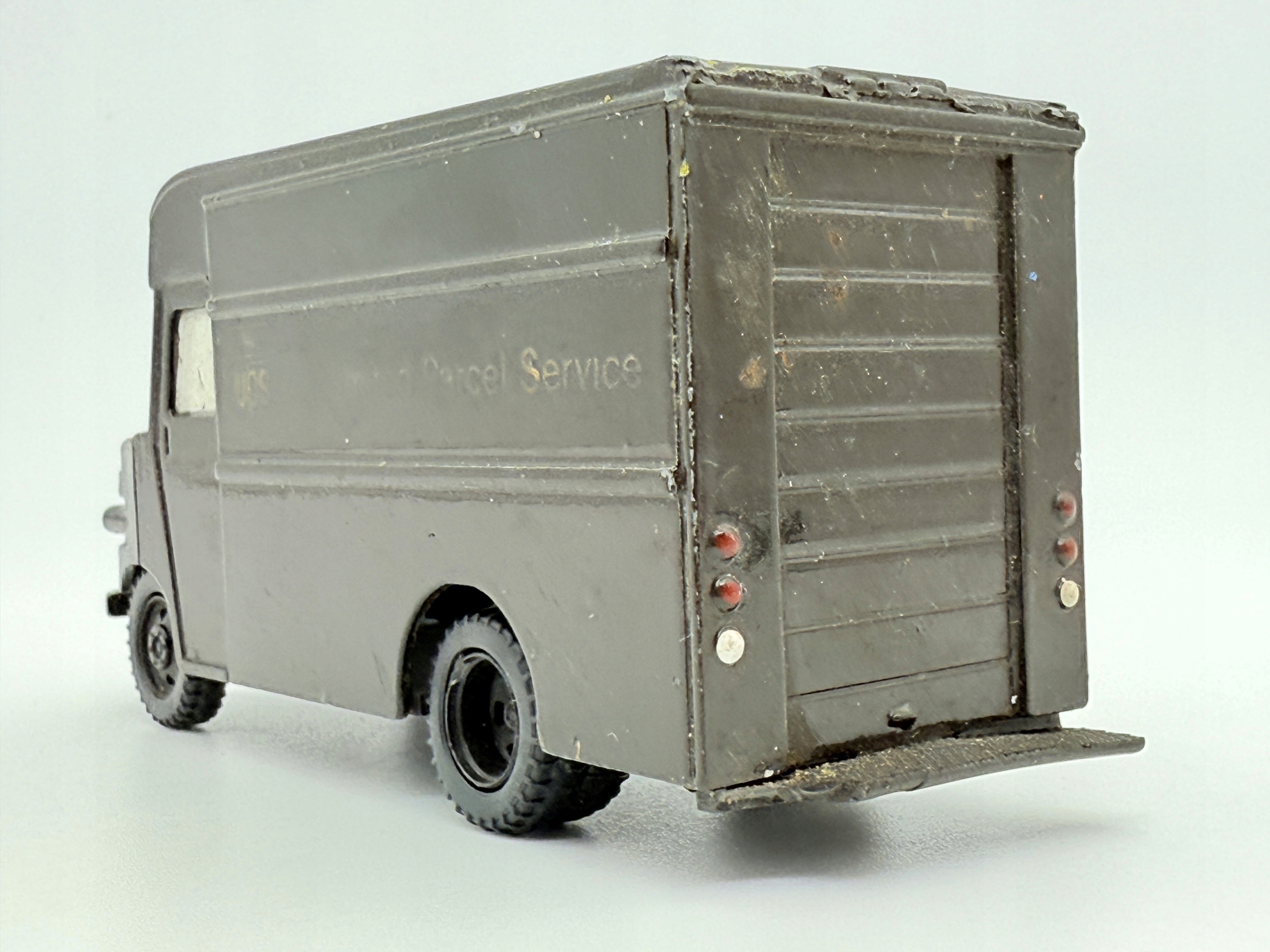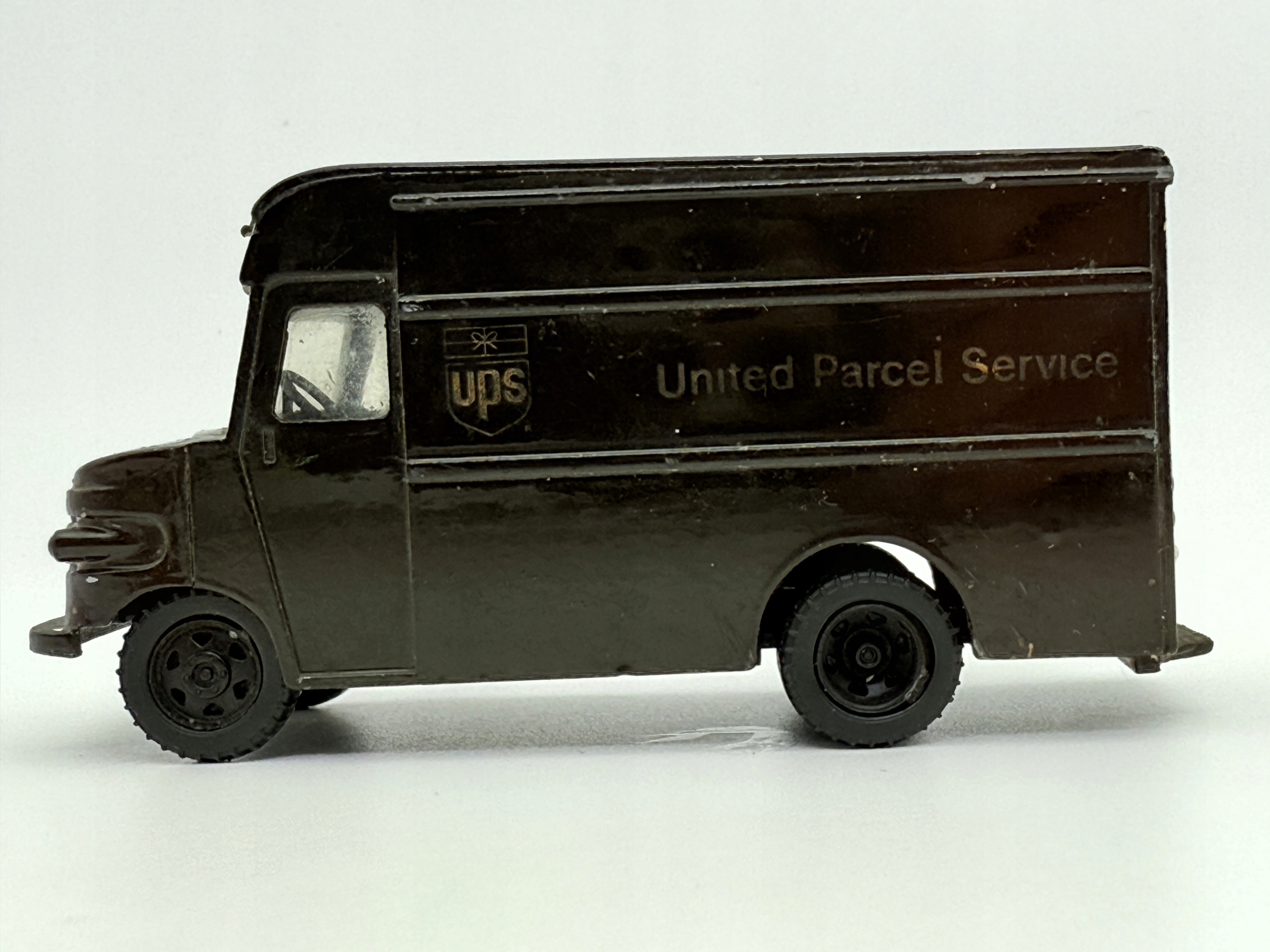 В пружине показан грузовик с характерным темно -серым цветом, с четким отпечатками логотипа UPS. Изготовленная из комбинации металла и пластика, модель твердое и хорошо воспроизводит детали исходного транспортного средства. Дополнительные детали, такие как задние огни и текстура шин, дают ему подлинность. Несмотря на видимые признаки использования, такие как функции на теле, модель сохраняет свое очарование и является интересным элементом каждой коллекции.