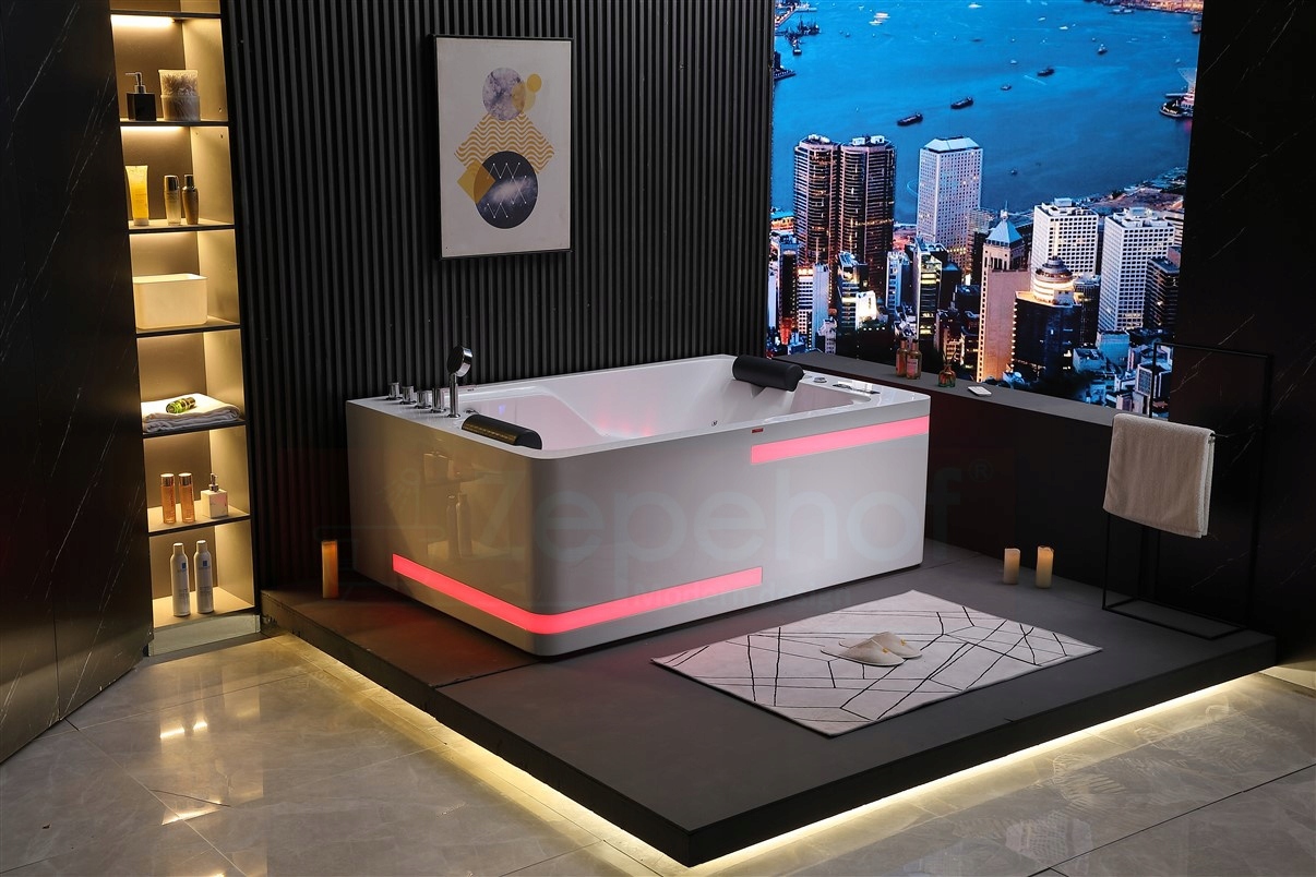 lighting in the wall of the bathtub so -called LED windows, chromotherapy (seven colors: red, green, blue, orange, yellow, white, Фиолетовый) Хромотерапия может поддерживать традиционное лечение, среди прочего, депрессивные состояния.