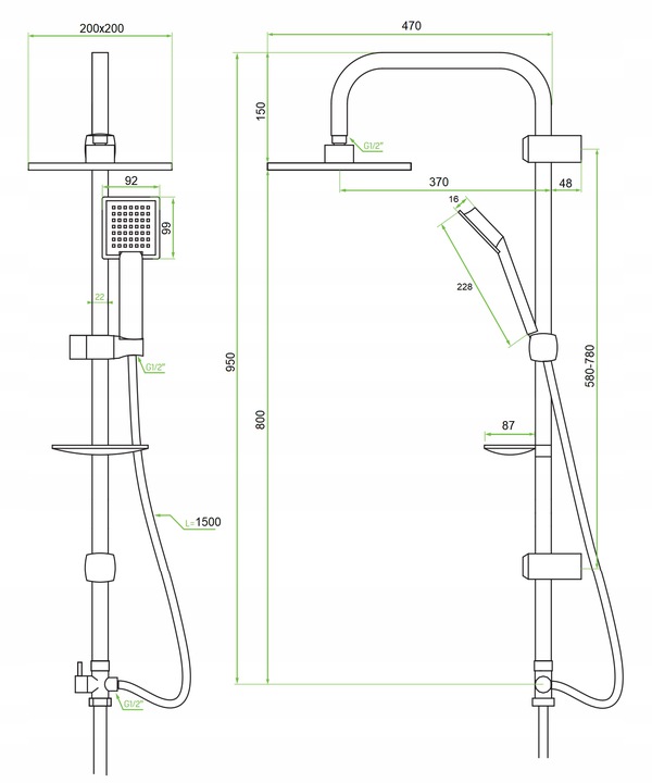 - Шланг: колонка — соединение аккумулятора: 40 см