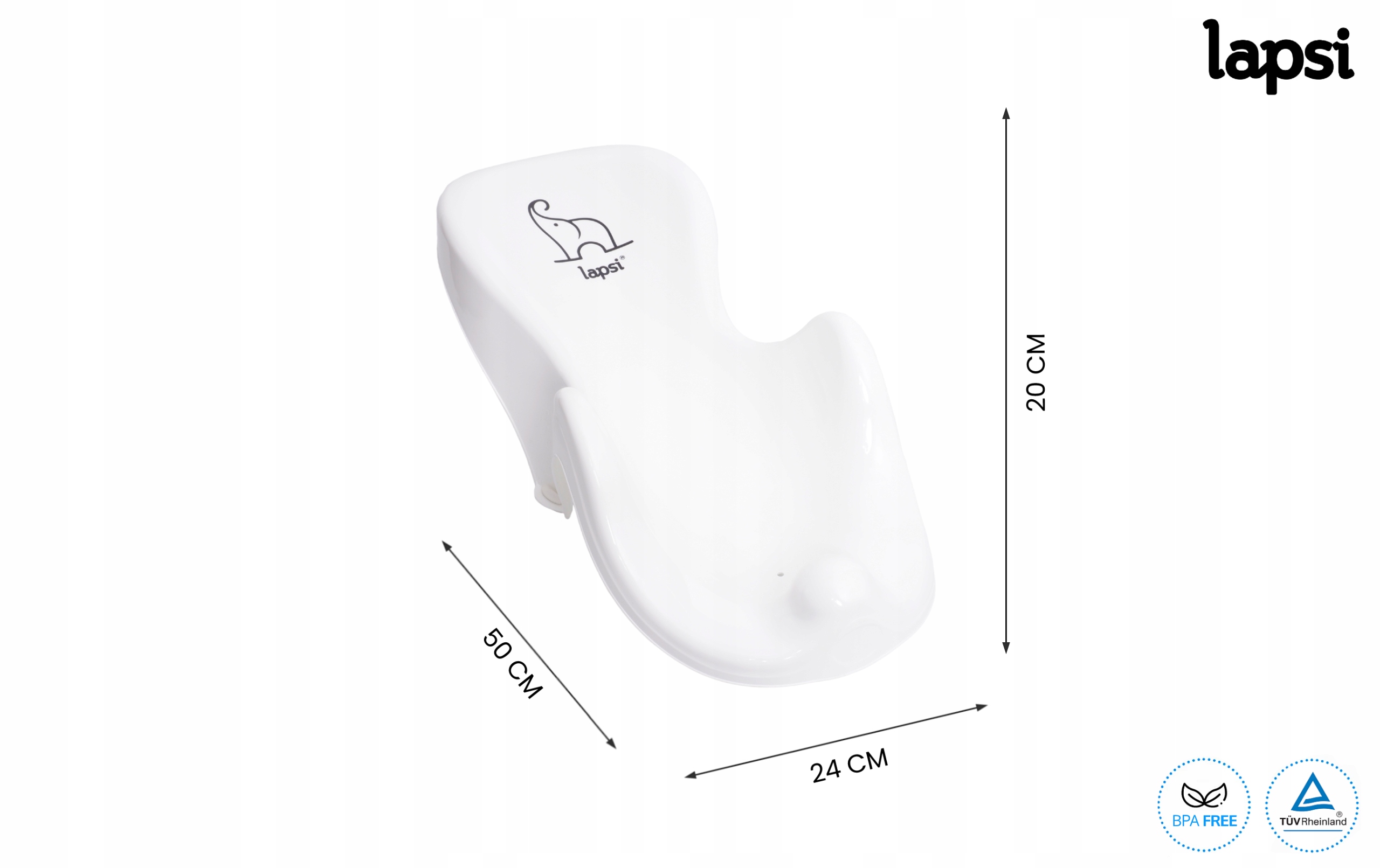 Анатомическая форма сиденья обеспечивает полный комфорт во время использования. Резиновые элементы на ножках предотвращают перемещение сиденья в детской или большой ванне. Продукт безопасен и стабилен.