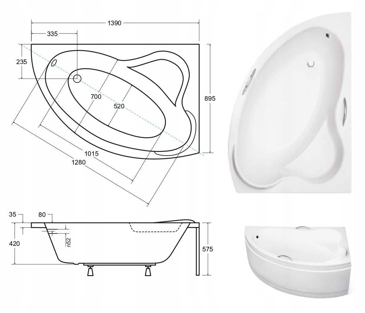 В комплект входят: ванна, кожух, сифон, ножки