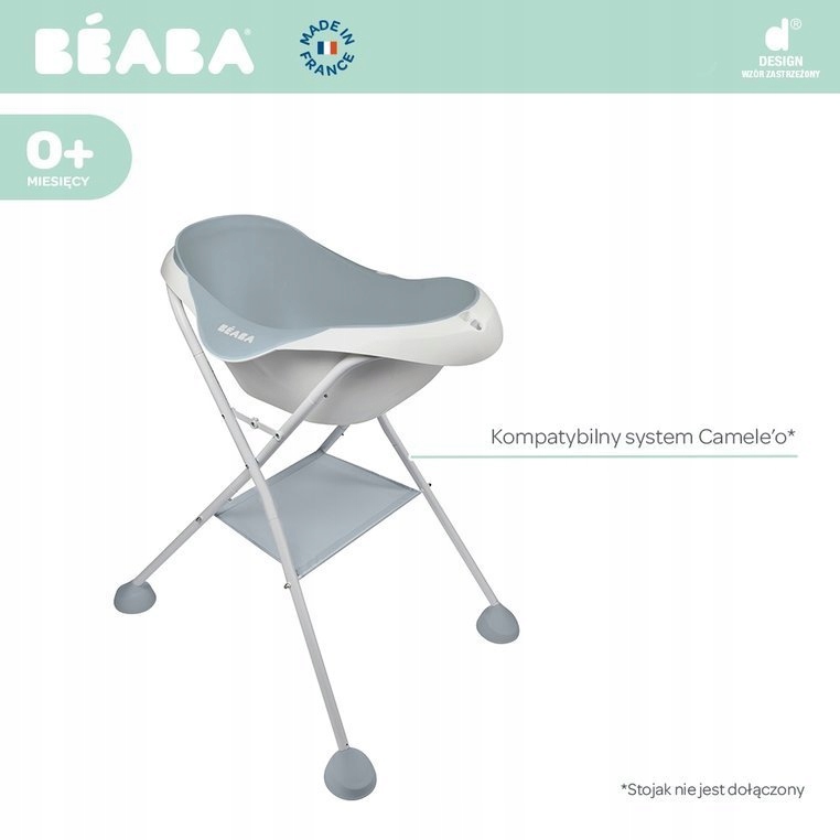 Концепция продукции Camele'o основана на совместимости всех элементов линейки, поэтому на подставке взаимозаменяемо монтируется не только ванна, но и пеленальный столик, что позволяет лучше организовать пространство в комнате. ванная или детская комната.