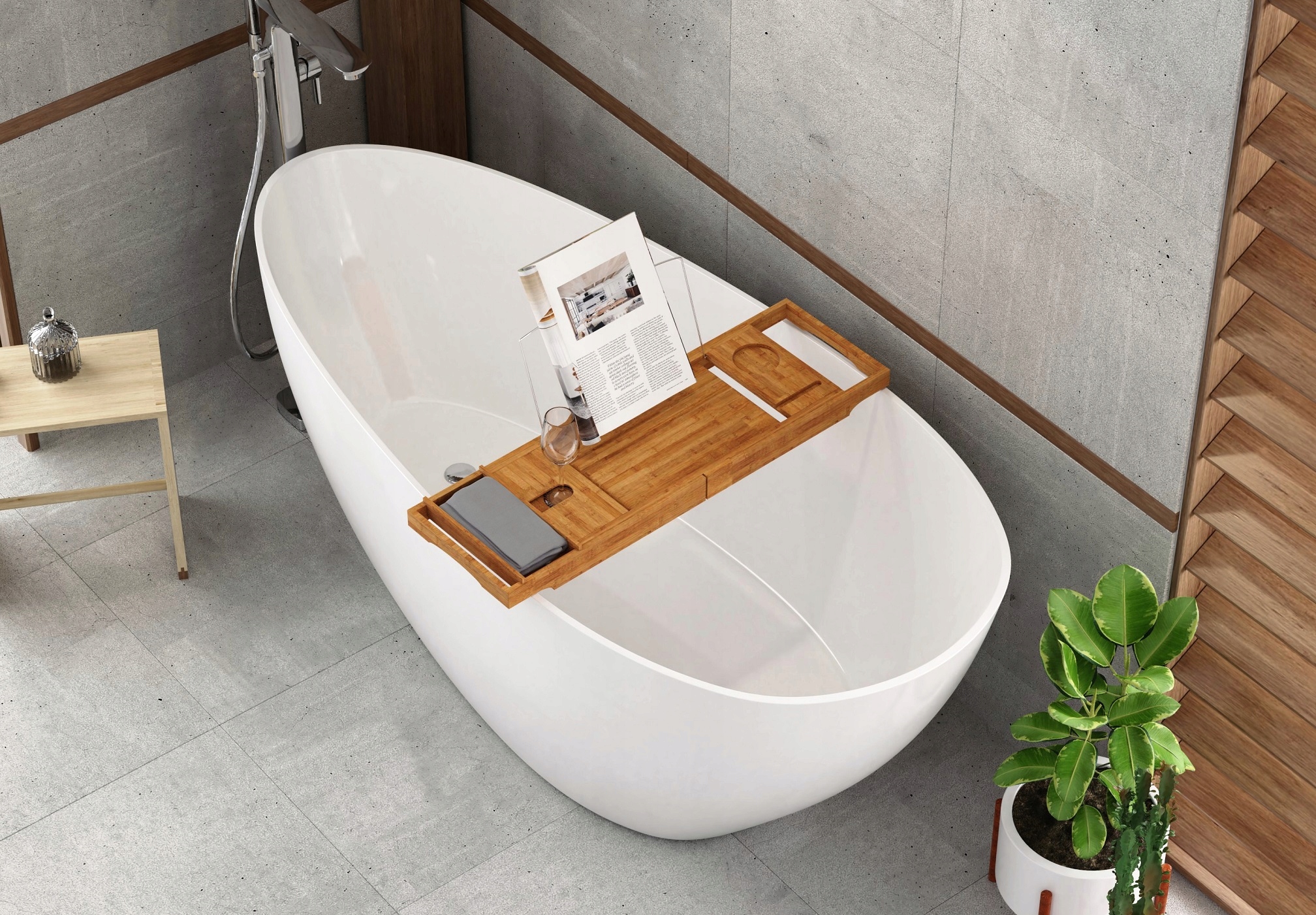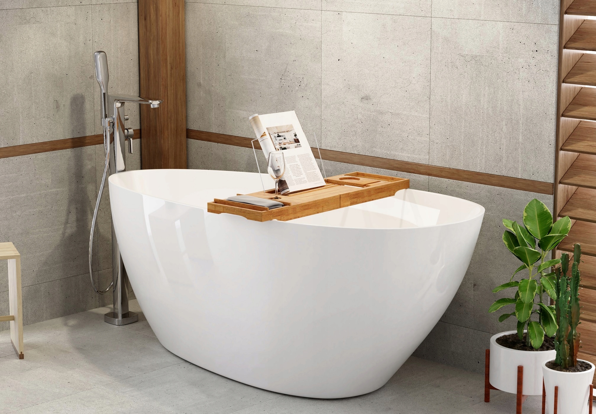 Отдельностоящая ванна Besco Goya XS 142x62см + СИФОН CLICK-CLACK + ПОЛКА ИЗ БАМБУКА