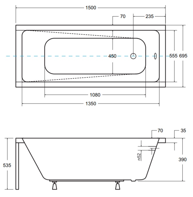 ВАННА BESCO MODERN З ПЕРЕКЛАДОМ 150х70 см