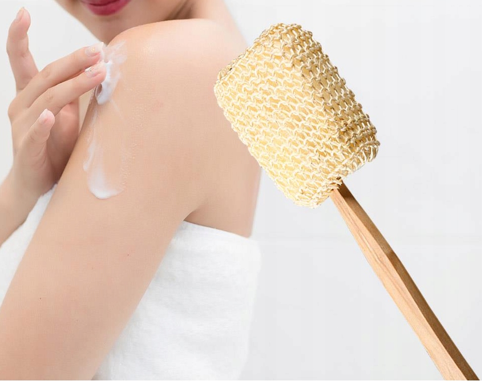 Губка с длинной профилированной ДЕРЕВЯННОЙ ручкой для мытья спины.