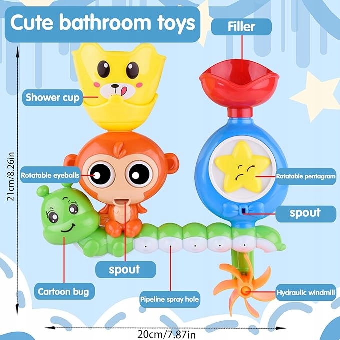 Простота установки: Игрушка для ванны просто установите присоски на гладкую стену в ванной или ванне и нажмите переключатель, чтобы душ распылил воду. Вы можете переключиться где угодно и снова подключить его в любое время.