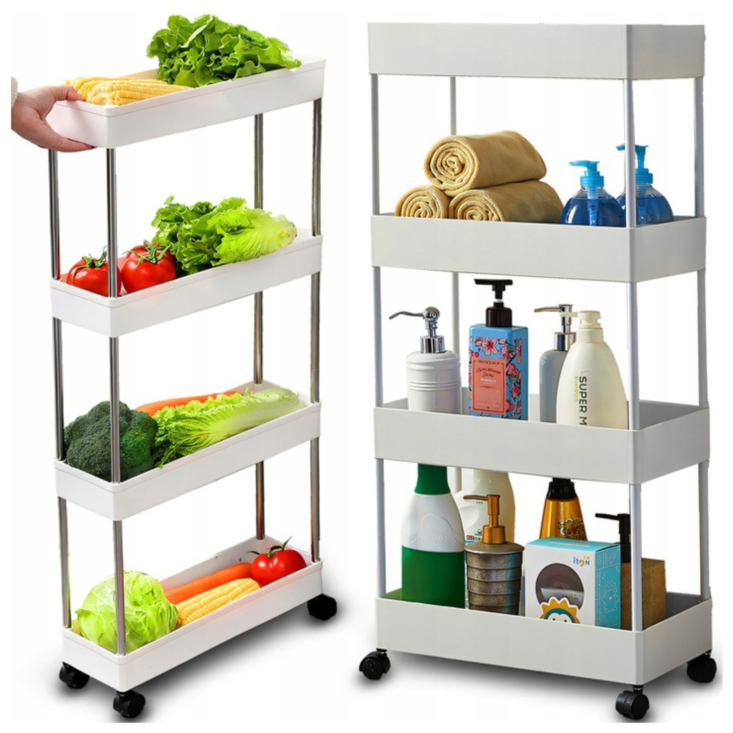 ➡️ ПОЛКА ДЛЯ КУХНИ ВАННАЯ 4-ЯРУСНАЯ ПОЛКА-ШКАФ НА КОЛЕСАХ С КРЮЧКАМИ