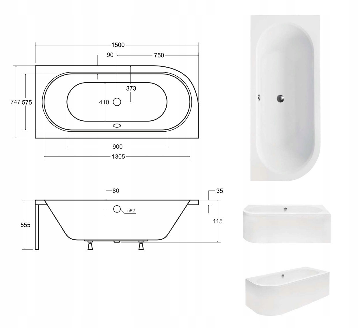 ВКЛЮЧЕНО: ванна, кожух, сифон, ножки