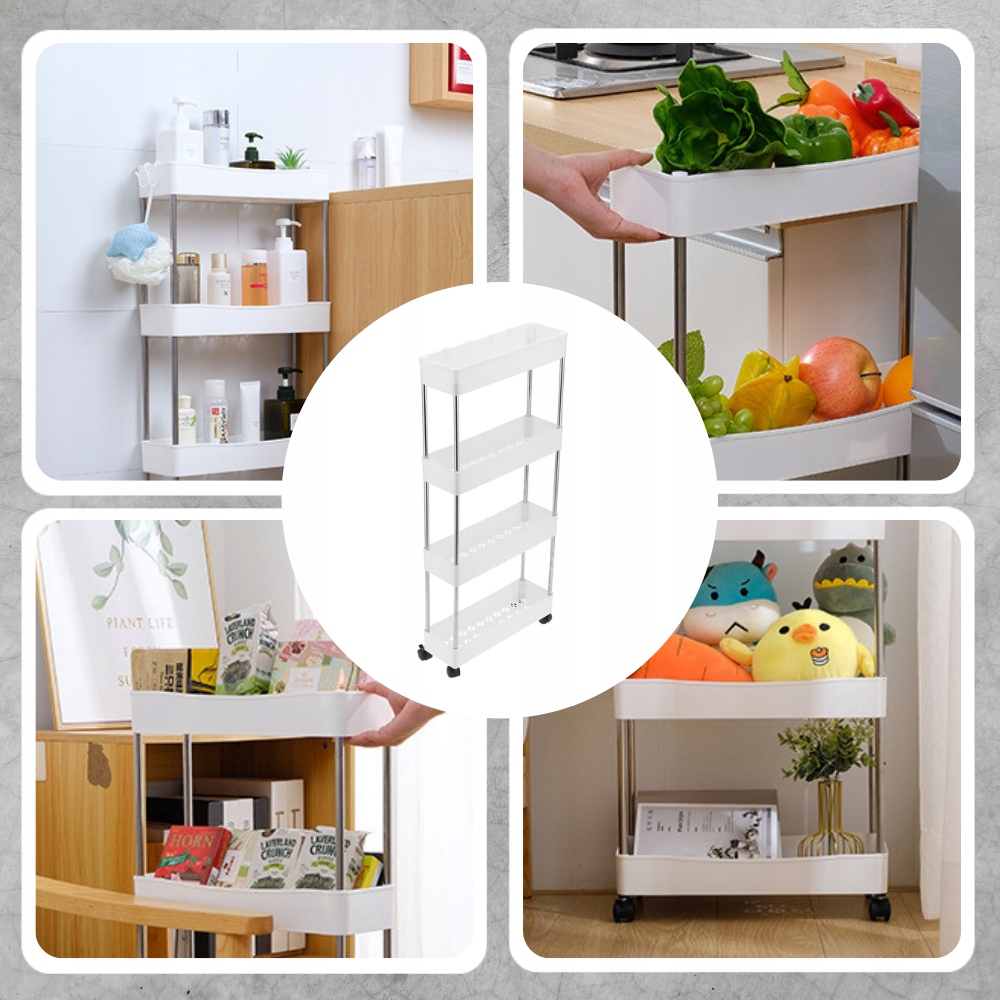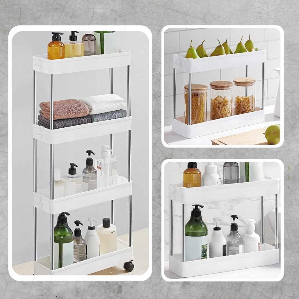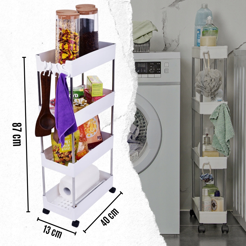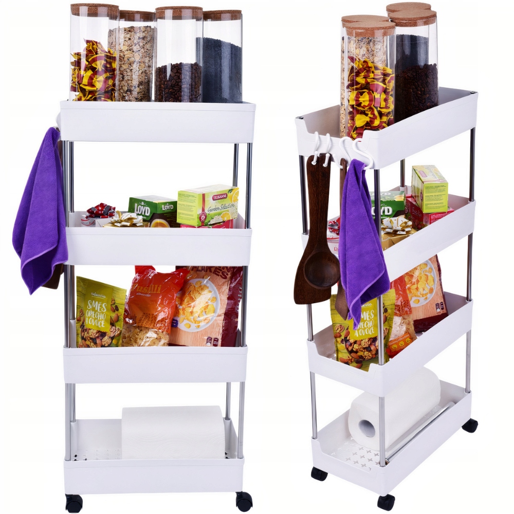Этот многофункциональный шкаф – идеальное решение для людей, которым нужен практичный контейнер для хранения различных вещей. Благодаря универсальному использованию его можно использовать как в ванной, где он сохранит косметику в порядке, так и на кухне, как контейнер для пищевых продуктов. Вы сами решаете, сколько полок будет в этом шкафу, благодаря который вы можете настроить под свои нужды. Кроме того, он оснащен колесами, которые позволяют быстро и легко перемещать его куда угодно. В комплект входят четыре полки и четыре крючка, на которых можно хранить полотенца или тряпки. Выбирайте этот шкаф и наслаждайтесь его функциональностью в каждой комнате вашего дома!