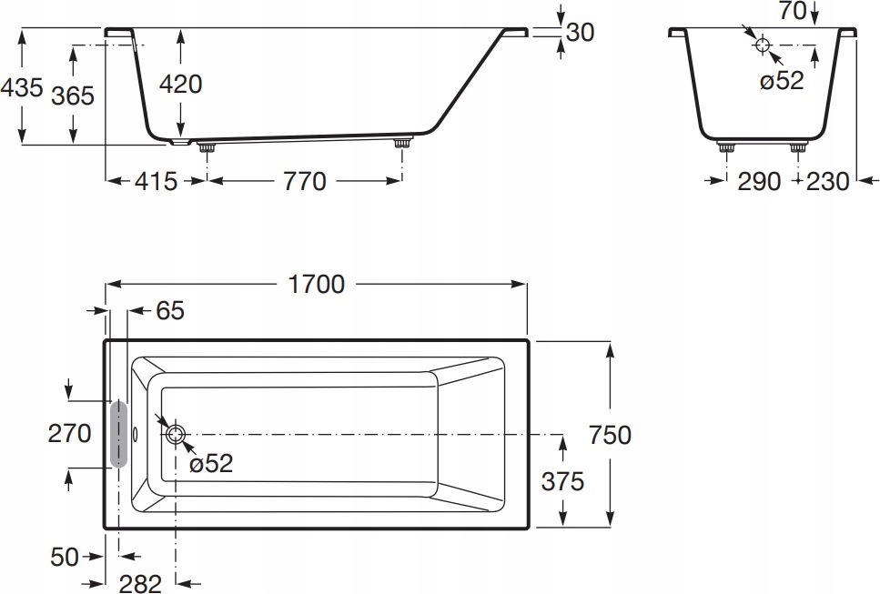 ПРЯМОУГОЛЬНАЯ ВАННА 170X75 СМ БЕЛАЯ ROCA VYTHOS