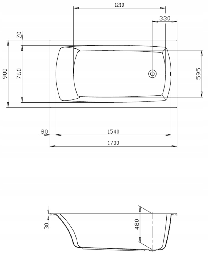 ПРЯМОУГОЛЬНАЯ ВАННА 170Х90 СМ ДЛЯ ВСТРАИВАЕМОГО HOESCH