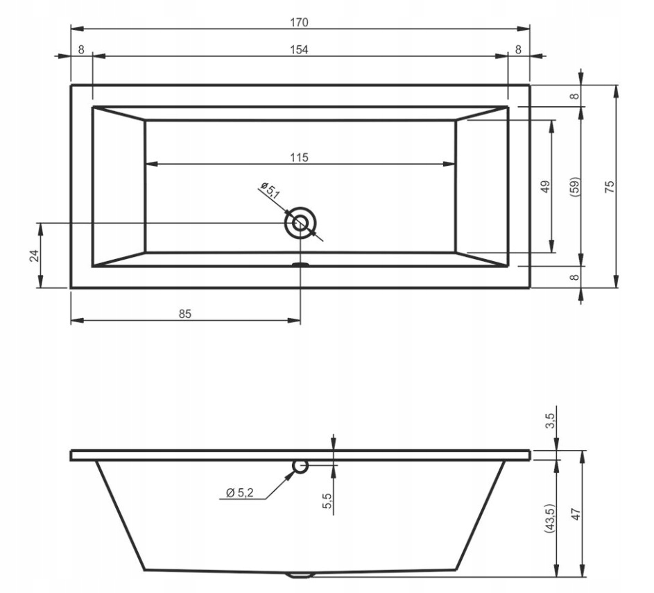 ВАННА ПРЯМОКУТНА RIHO LUSSO 170X75 BA18