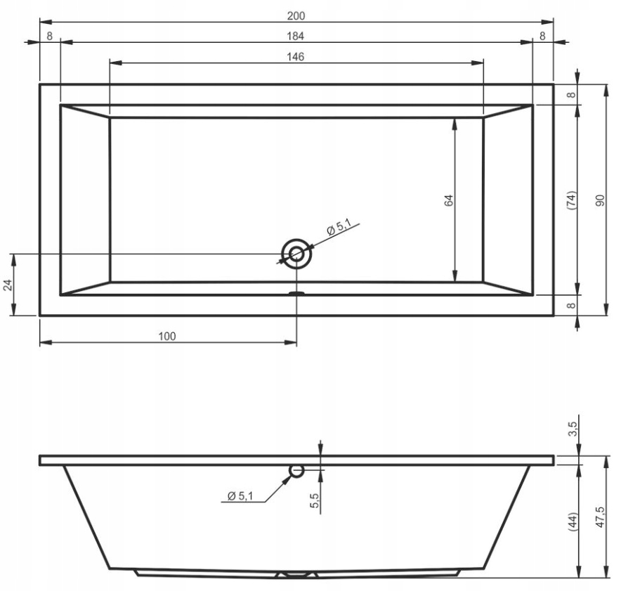 ВАННА ПРЯМОКУТНА RIHO LUSSO 200X90 BA60