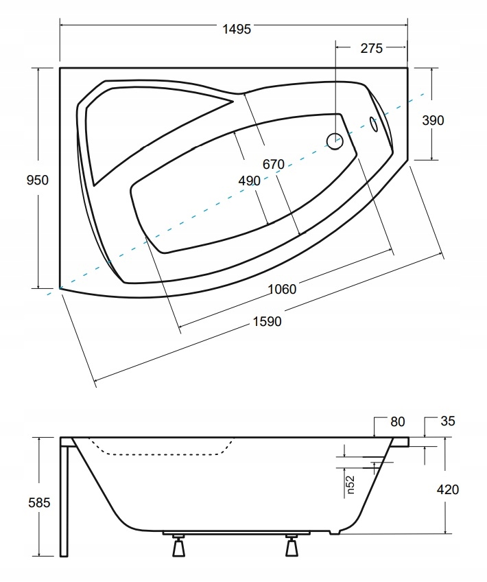 ВКЛЮЧЕНО: ванна, кожух, сифон, ножки