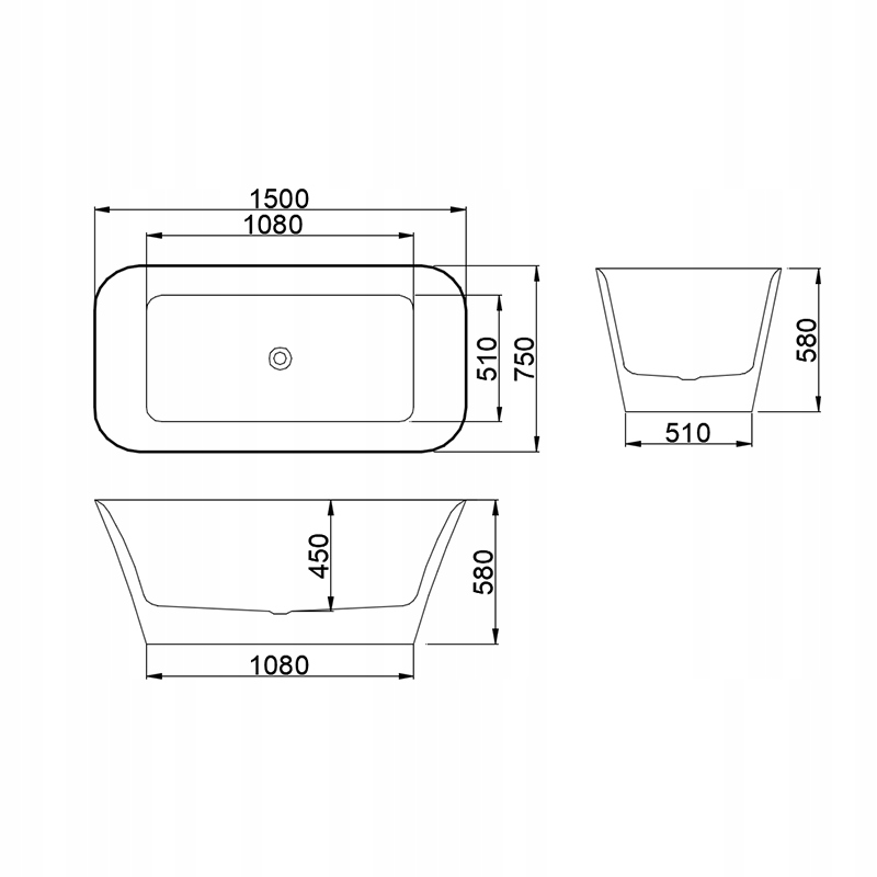 СВОБОДНОСТОЯЩАЯ ВАННА VIANA 511A БЕЛАЯ, ХРОМ ПЕРЕЛИВ 150x75 CM