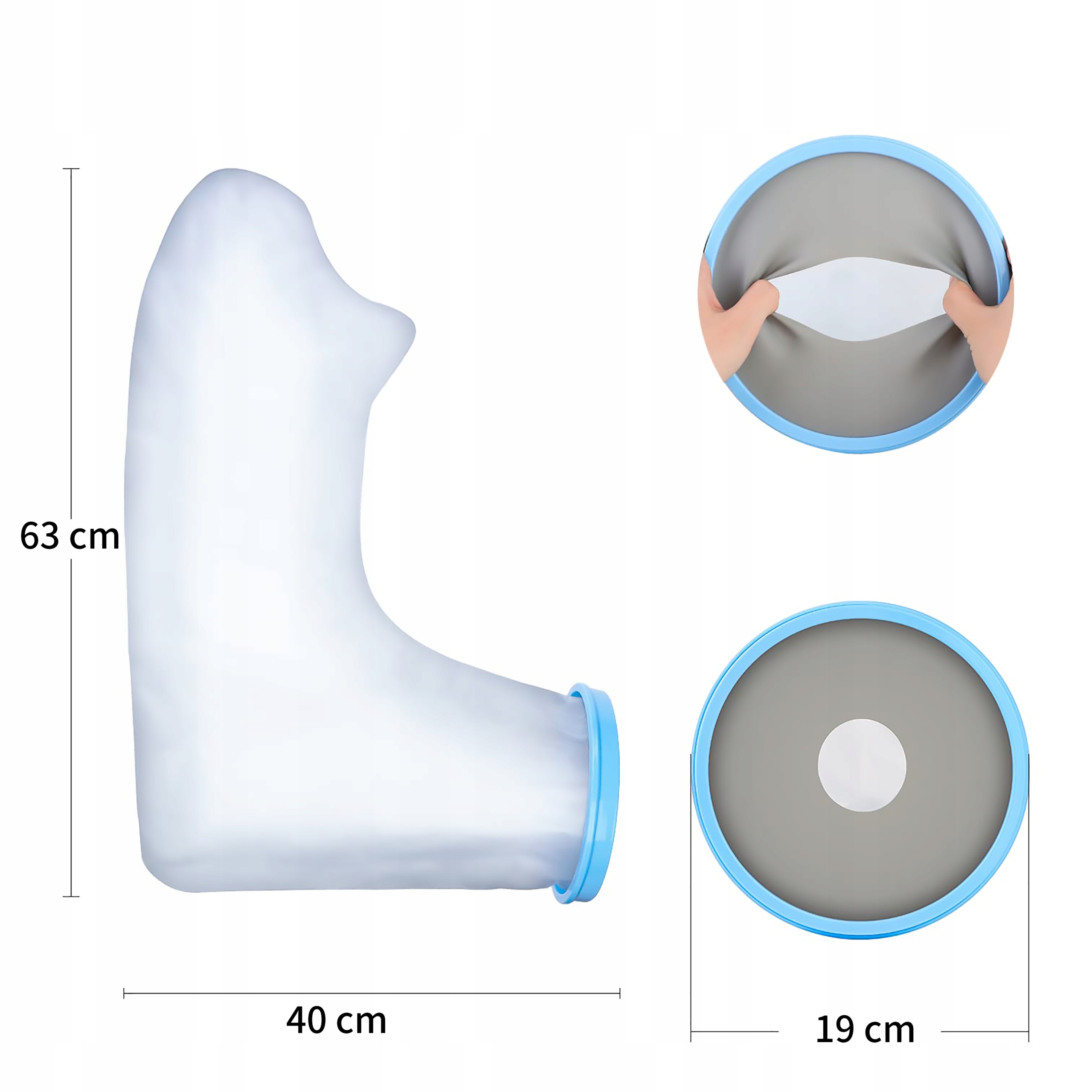 Рукав для купания очень легко надевается. и взлететь. Вход в его внутреннюю часть широкий и автоматически подстраивается под форму повязки или руки. Это позволяет легко надевать как пациентам с гипсовой повязкой, так и людям с бандажной повязкой. Он позволяет свободно принимать ванну, не опасаясь расплескать гипс, ортез или повязки. Заменить их зачастую очень сложно или невозможно. Однако во влажной повязке могут начать размножаться вредные для здоровья бактерии, поэтому важно следить за тем, чтобы она всегда была сухой. Рукав для купания также станет отличным подспорьем для лиц, осуществляющих уход за людьми после несчастных случаев или операций. Они могут гораздо свободнее выполнять с пациентом все необходимые гигиенические мероприятия.