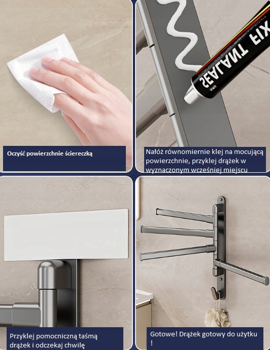 ✅ Ручка имеет четыре, регулируемые рычаги для подвесных полотенец.