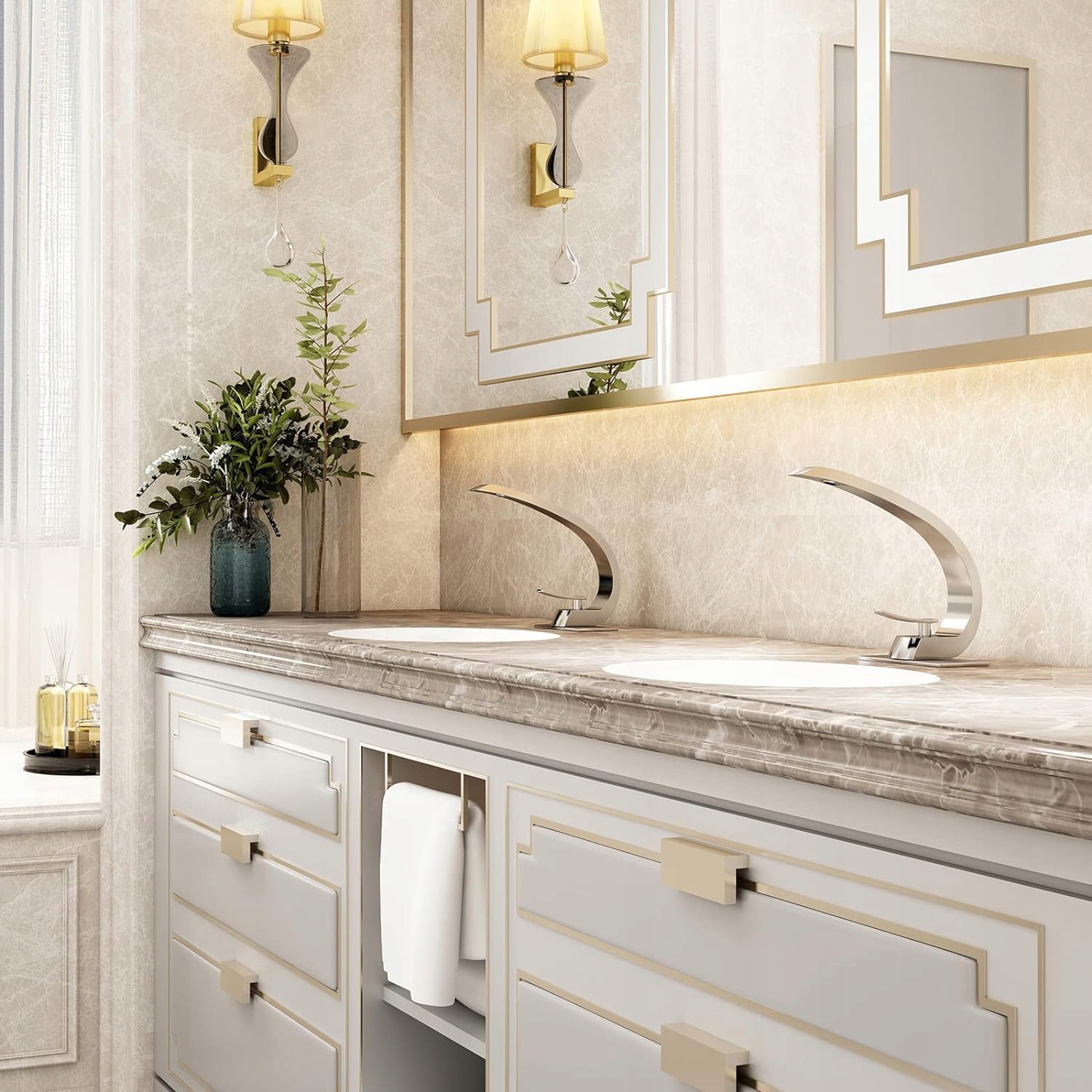 - 💧 【Отличное качество】: Наши батареи изготовлены из твердой хромированной латуни, оборудованные ручками цинк сплава и змеями из нержавеющей стали, которые очень устойчивы к коррозии, ржавчине и потреблению. 【Элегантный дизайн】: линии сна и круглые формы создают современный и элегантный вид. Батареи создают простой, но современный стиль ванной комнаты.