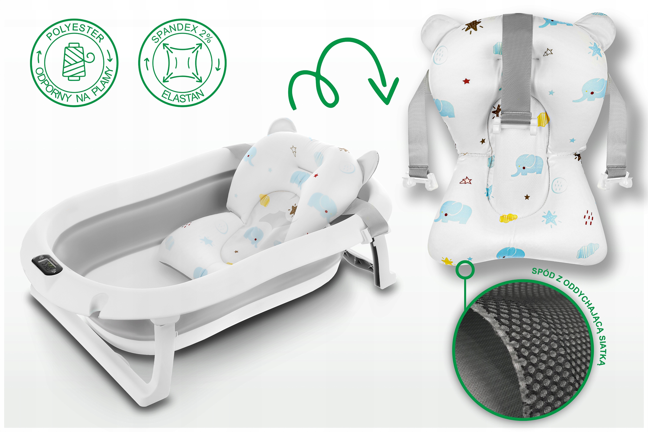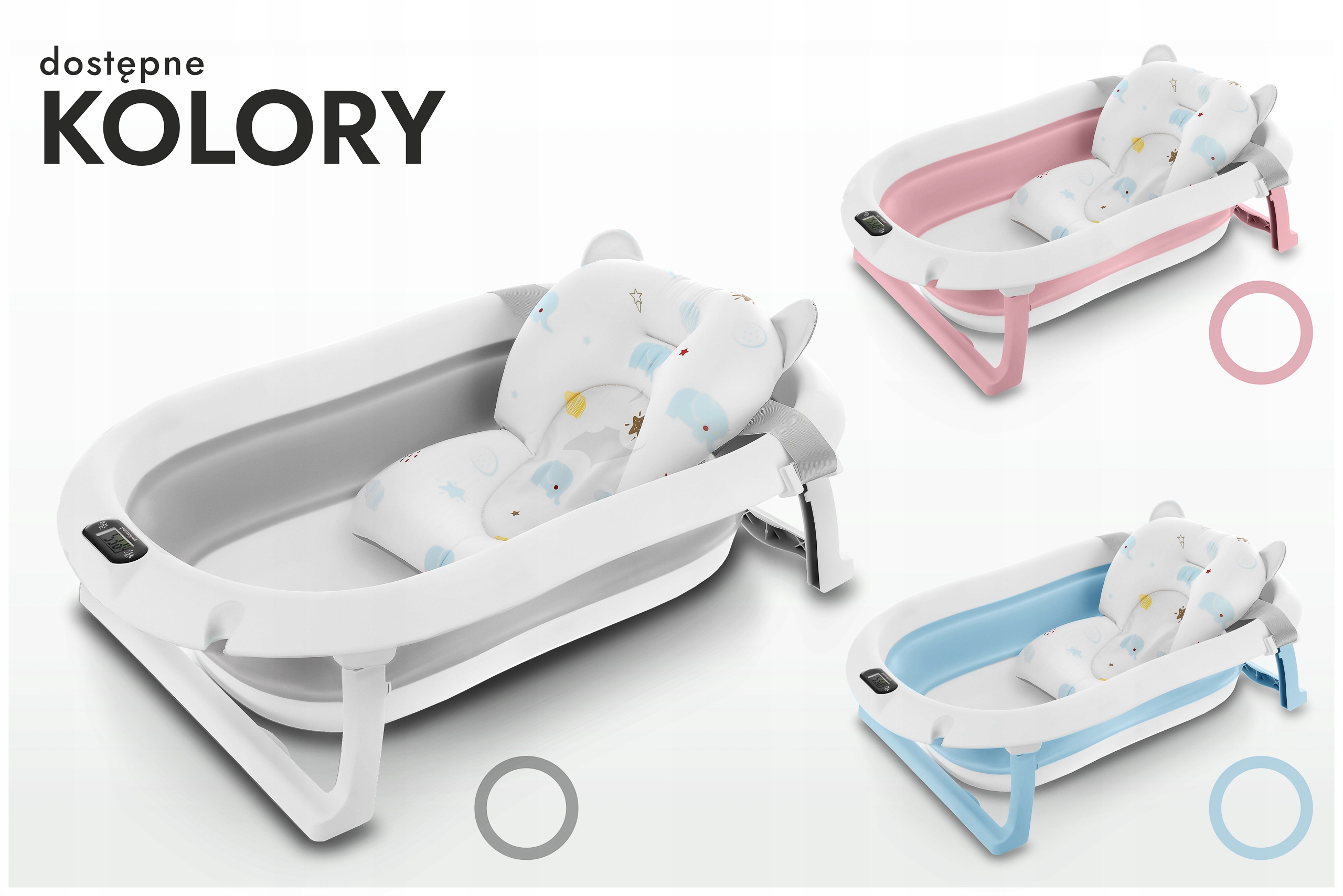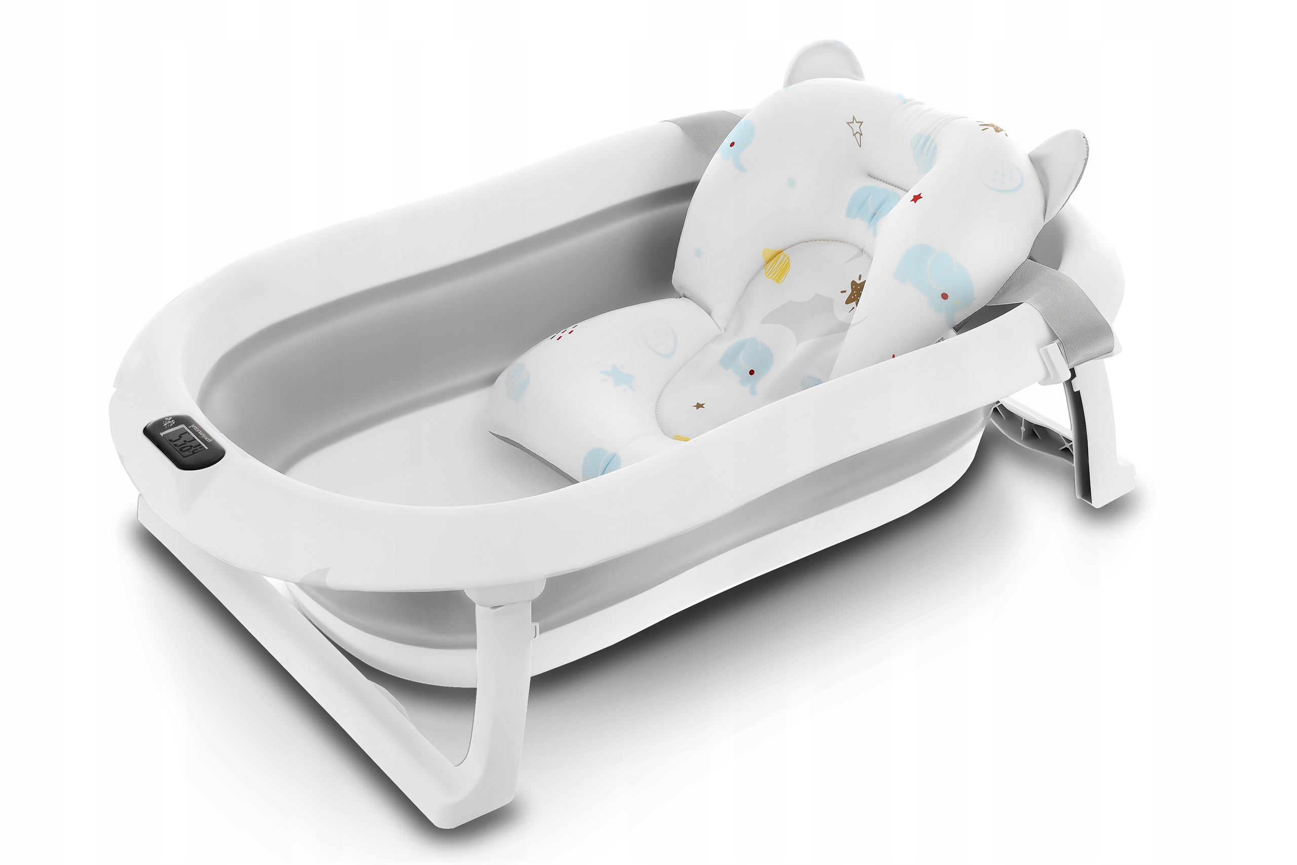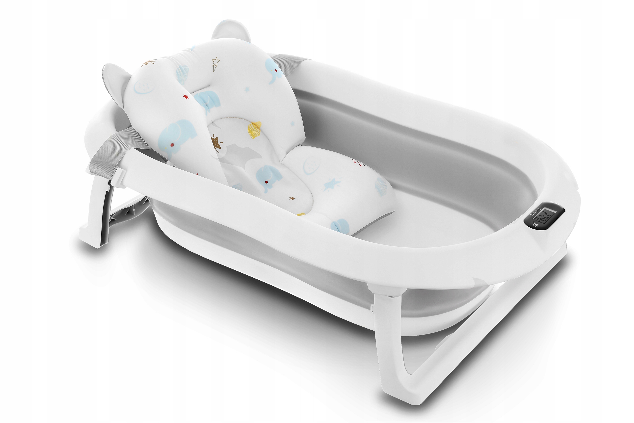 Ванна была разработана для ежедневного комфорта родителей. Благодаря складному дизайну вы можете легко хранить его в гардеробе или взять с собой в путешествие. Встроенный термометр позволяет отслеживать температуру воды, что дает уверен, что ребенок будет купаться в удобных условиях (перед тем, как поставить ребенка в воду, всегда убедитесь, что его температура верна!). Дополнительная подушка, установленная на ремнях, позволяет ванне новорожденных, стабилизируя ее положение