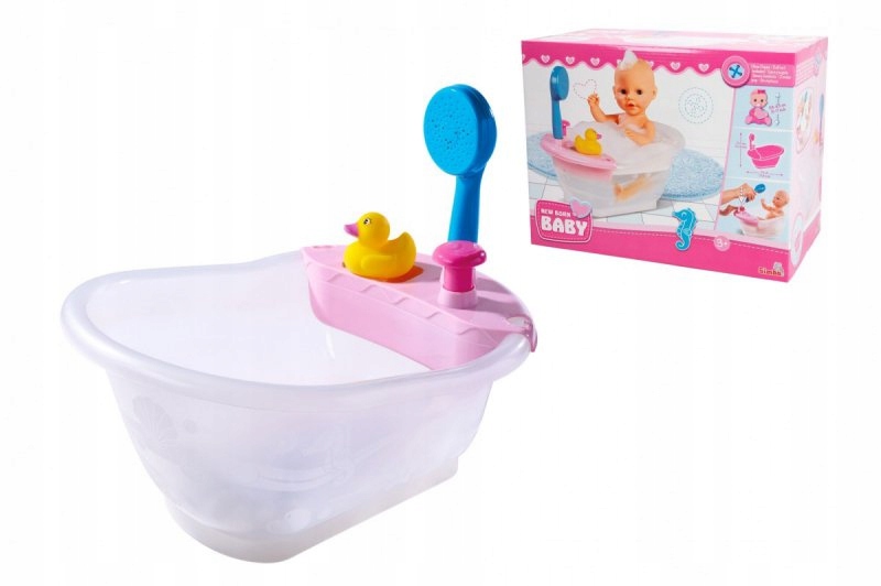 - Ванна для кукол New Born Baby от Simba привлекает внимание полупрозрачным материалом, а снаружи украшена подводными мотивами, что обеспечивает реалистичное удовольствие от купания для всех кукол ростом 3043 см.