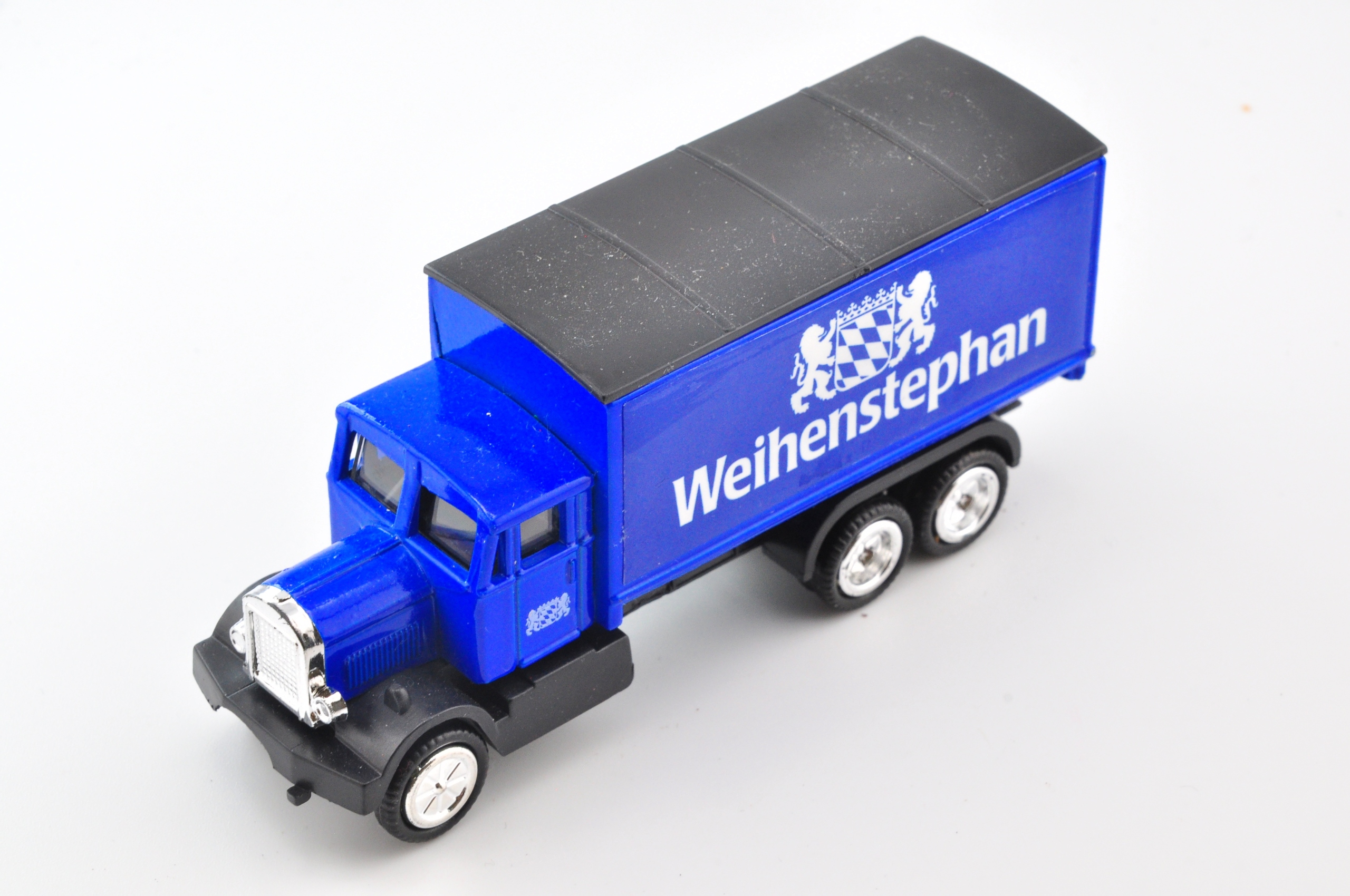 Модель основана на классическом грузовике с рекламным мотивом Weihenstephan. Цвета хранятся в синем оттенке с черной крышей, которая относится к стилю ретро.
