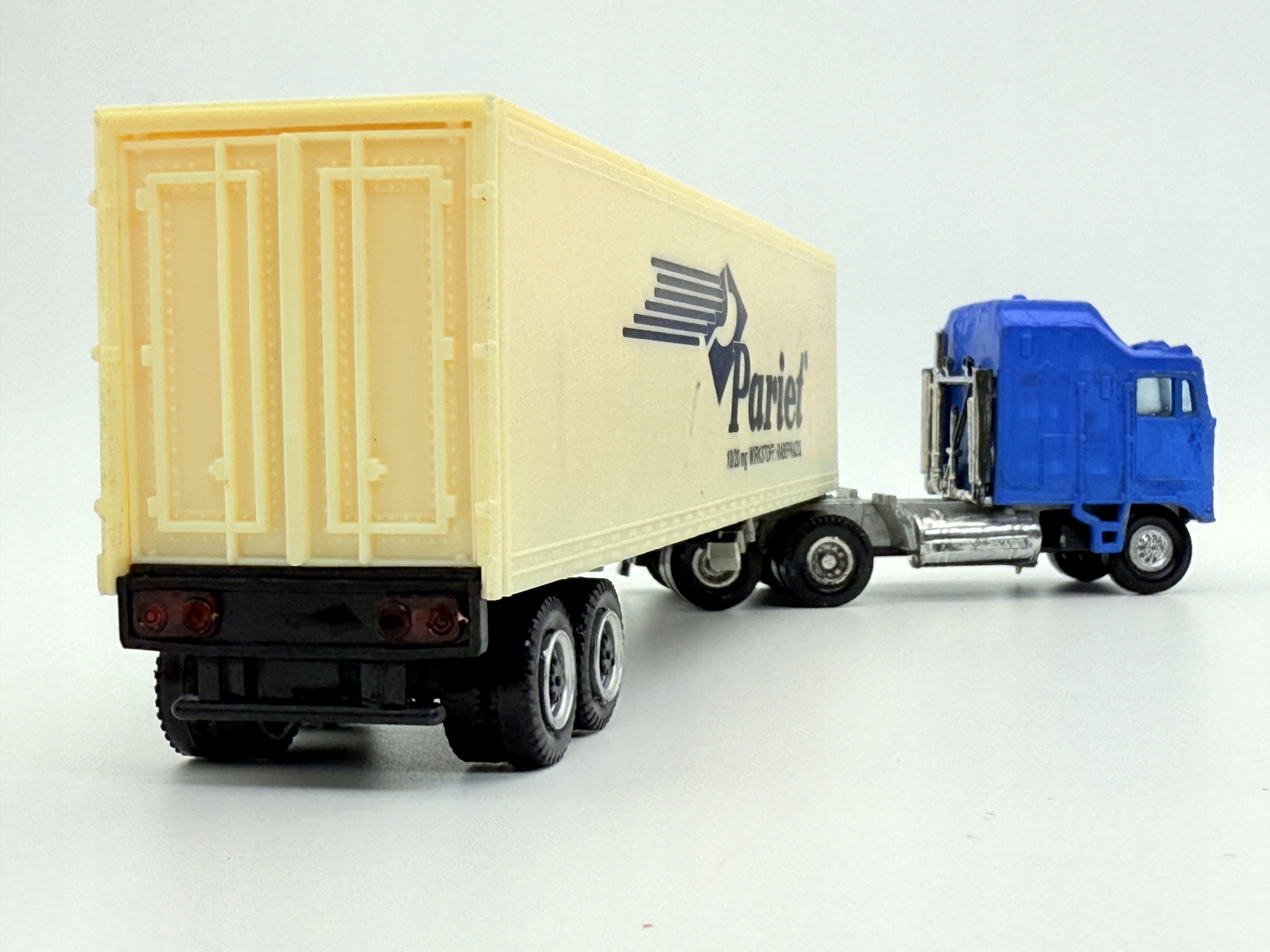 Представленная весна - это стилизованный грузовик, который привлекает внимание его интенсивным синим цветом и серебряными деталями. Модель изготовлена из металла и пластика, что обеспечивает прочность и долговечность. Кроме того, полупрерышник, который является частью набора, дает ему характер и делает его более привлекательным для коллекционеров. Несмотря на то, что нет вступительных элементов, его универсальный дизайн и эстетика делают его интересным выбором для каждого любовника автомобильных моделей.