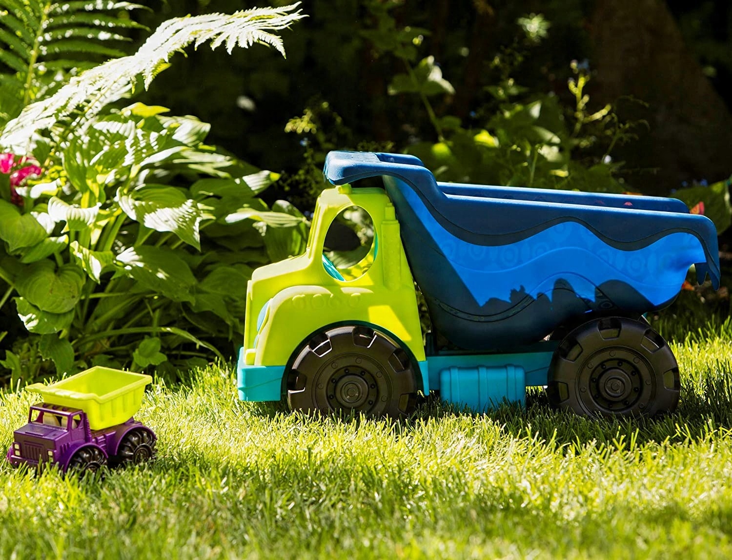 Для гигантского самосвала B. Toys нет слишком неровной дороги и нет слишком тяжелого груза! Этот игрушечный грузовик готов ко всему, о чем только может мечтать ваш маленький строитель, а самосвал достаточно большой, чтобы вместить множество игрушек. Сходите на пляж, наполните песочницу, выбросьте ее в сад, играйте дома и веселитесь на свежем воздухе!