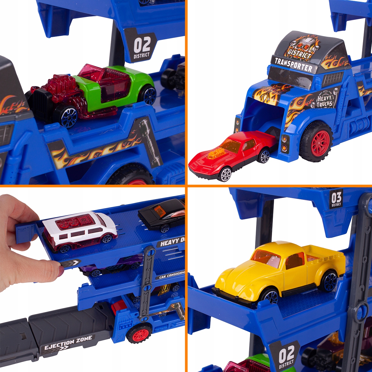 Эвакуатор имеет 3 уровня для безопасной перевозки и хранения игрушечных машинок, благодаря чему ваш ребенок не потеряет ни одной ценной машинки и сможет перевозить ее по гоночным трассам всего мира.