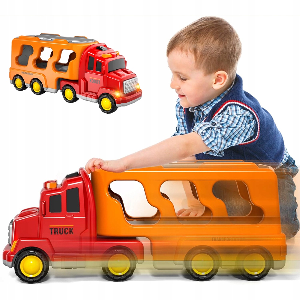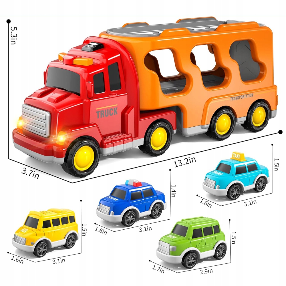 ВАНТАЖІВКА ЛАФЕТ ТІР АВТОМОБІЛЬ КОЛЬОРОВІ МАШИНКИ + 4 МАЛЕНЬКІ АВТОМОБІЛІ